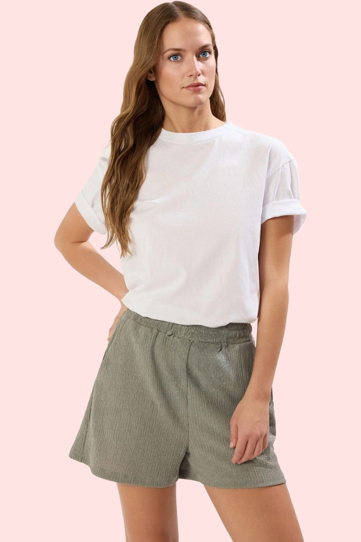 Kadın Kısa Boy Straight Kalıp Şort Cep Detaylı Rahat Yüksek Bel Günlük Kombinler Hafta Sonu