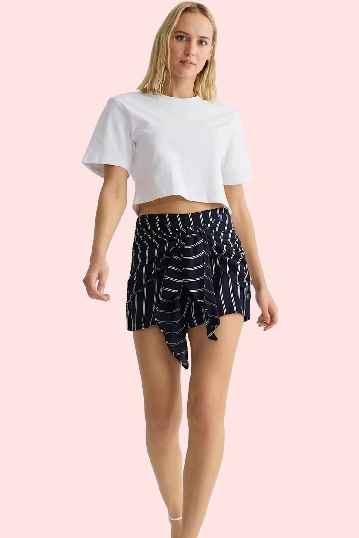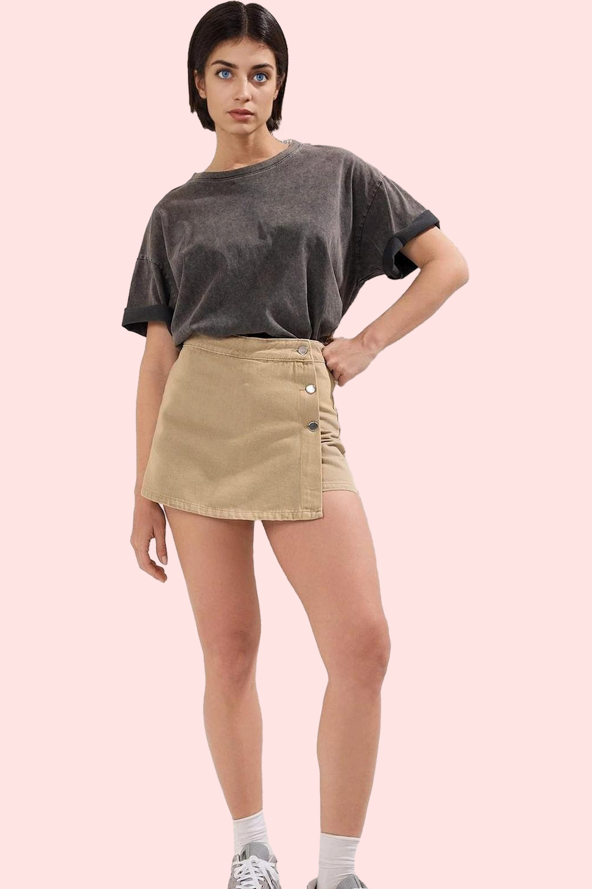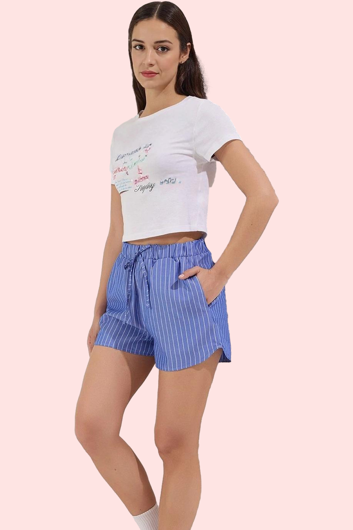 Kadın Mini Şort Pamuk Straight Siluet Yüksek Bel Günlük Kullanım Yaz Aylarının Vazgeçilmezi