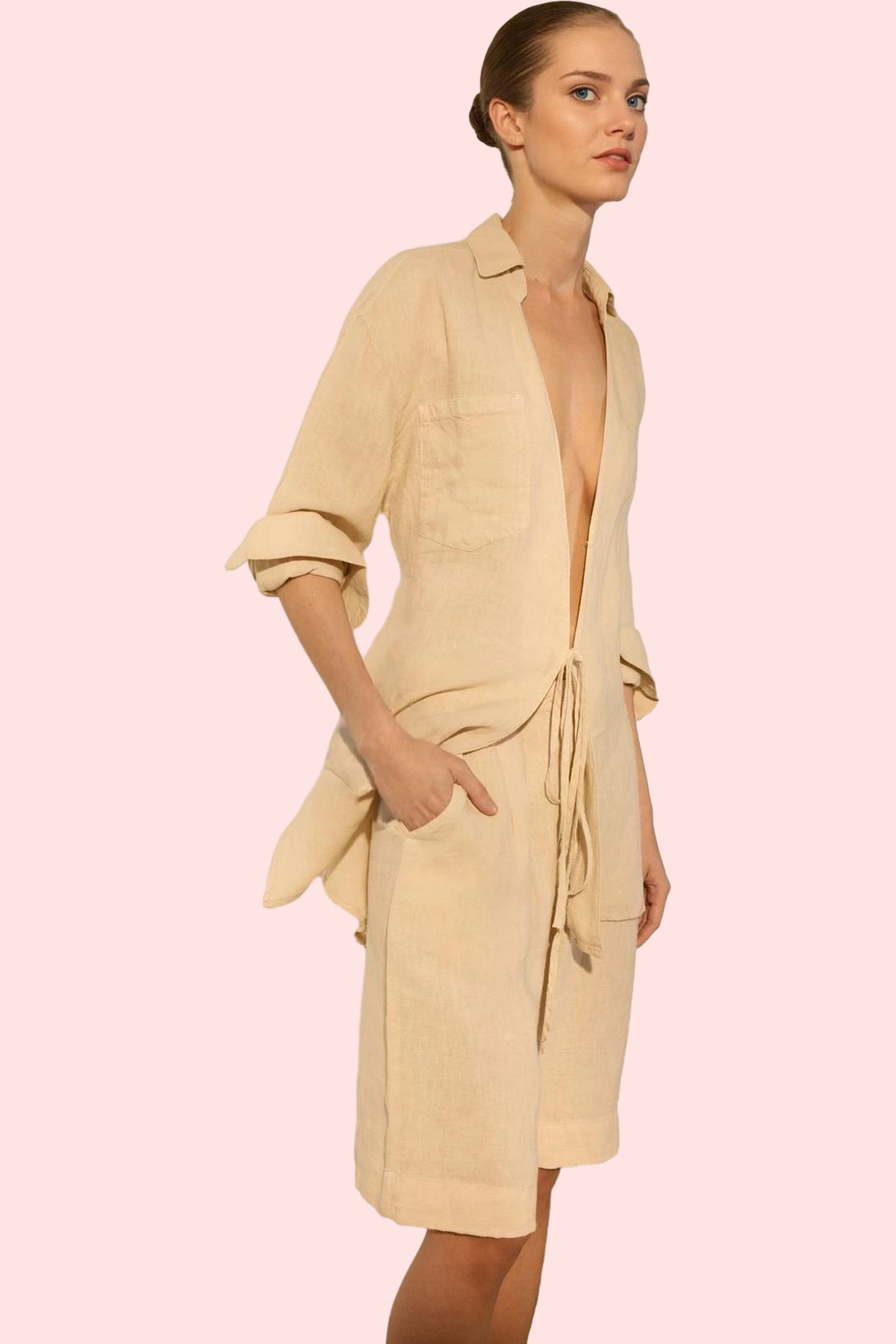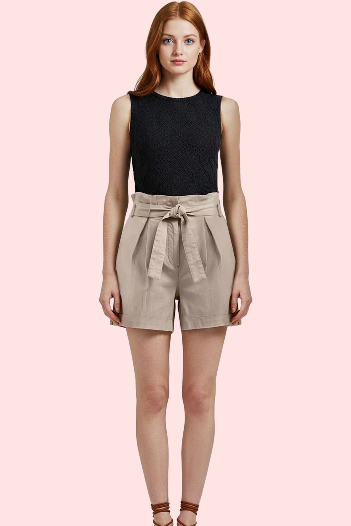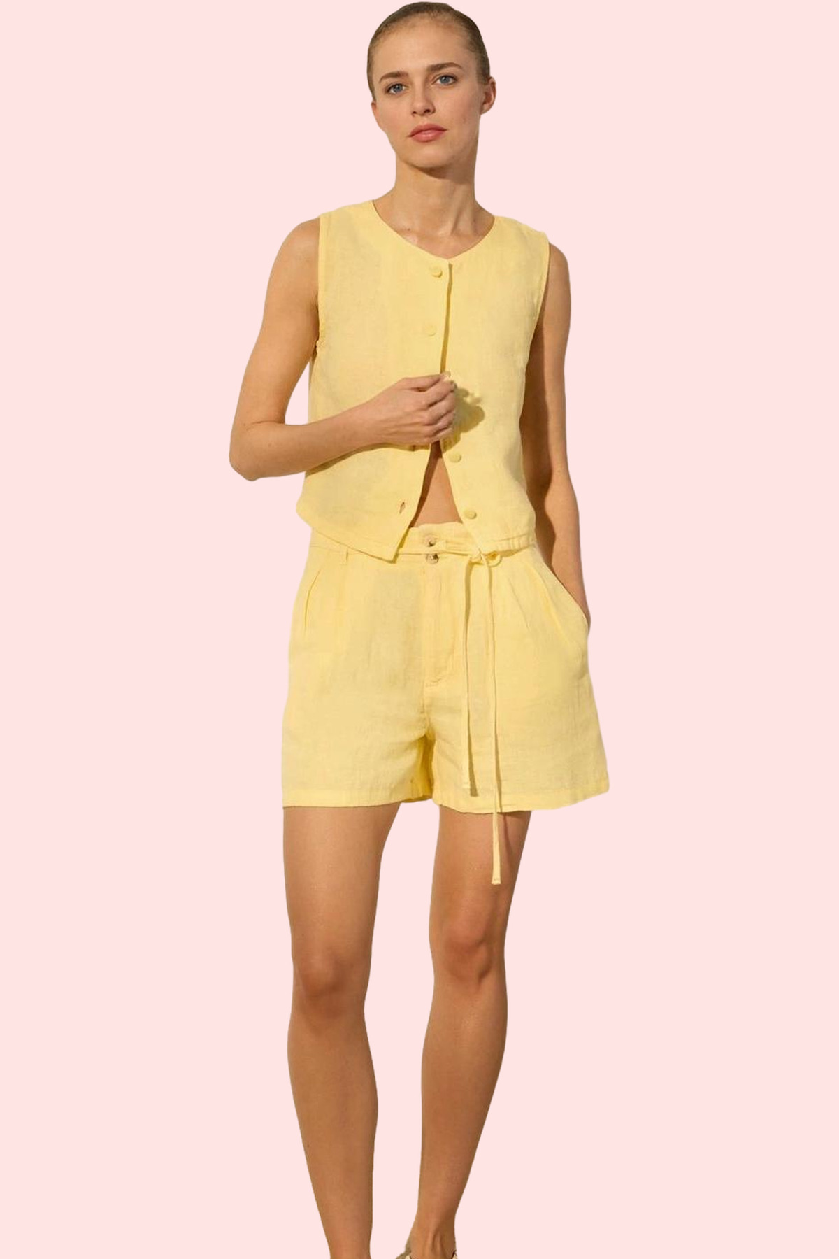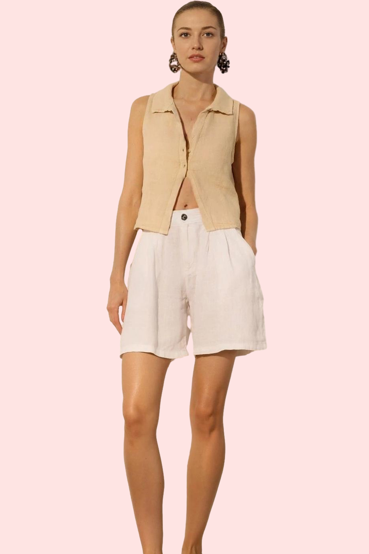 Kadın Yüksek Bel Keten Mini Şort; Geniş Paça; Rigid Dokuma; Yazlık Yaz Aylarının Vazgeçilmezi