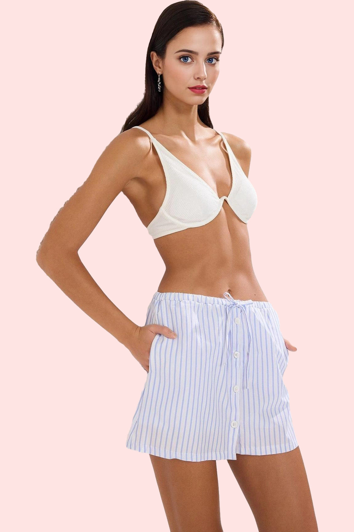 Kadın Çizgili Dokuma Plaj Şortu Rahat ve Şık Yaz Kombinleri İçin Günlük Kullanım Hafta Sonu