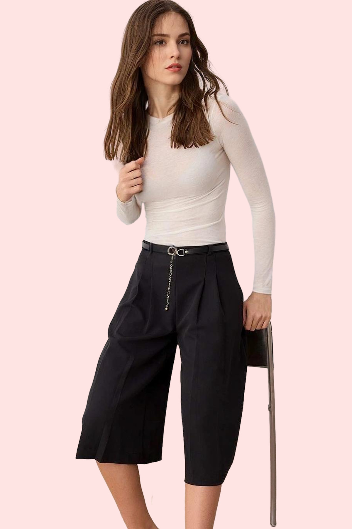 Kadın Geniş Paça Şort Yüksek Bel Straight Kalıp Rahat Yazlık Günlük Kullanım Modern Tasarım