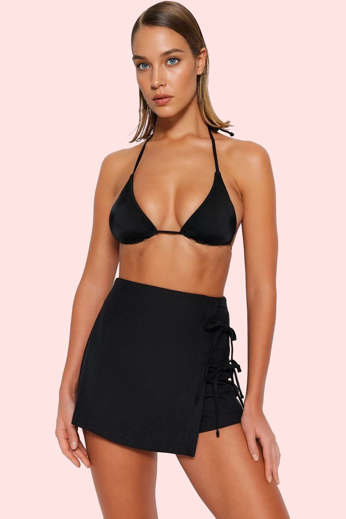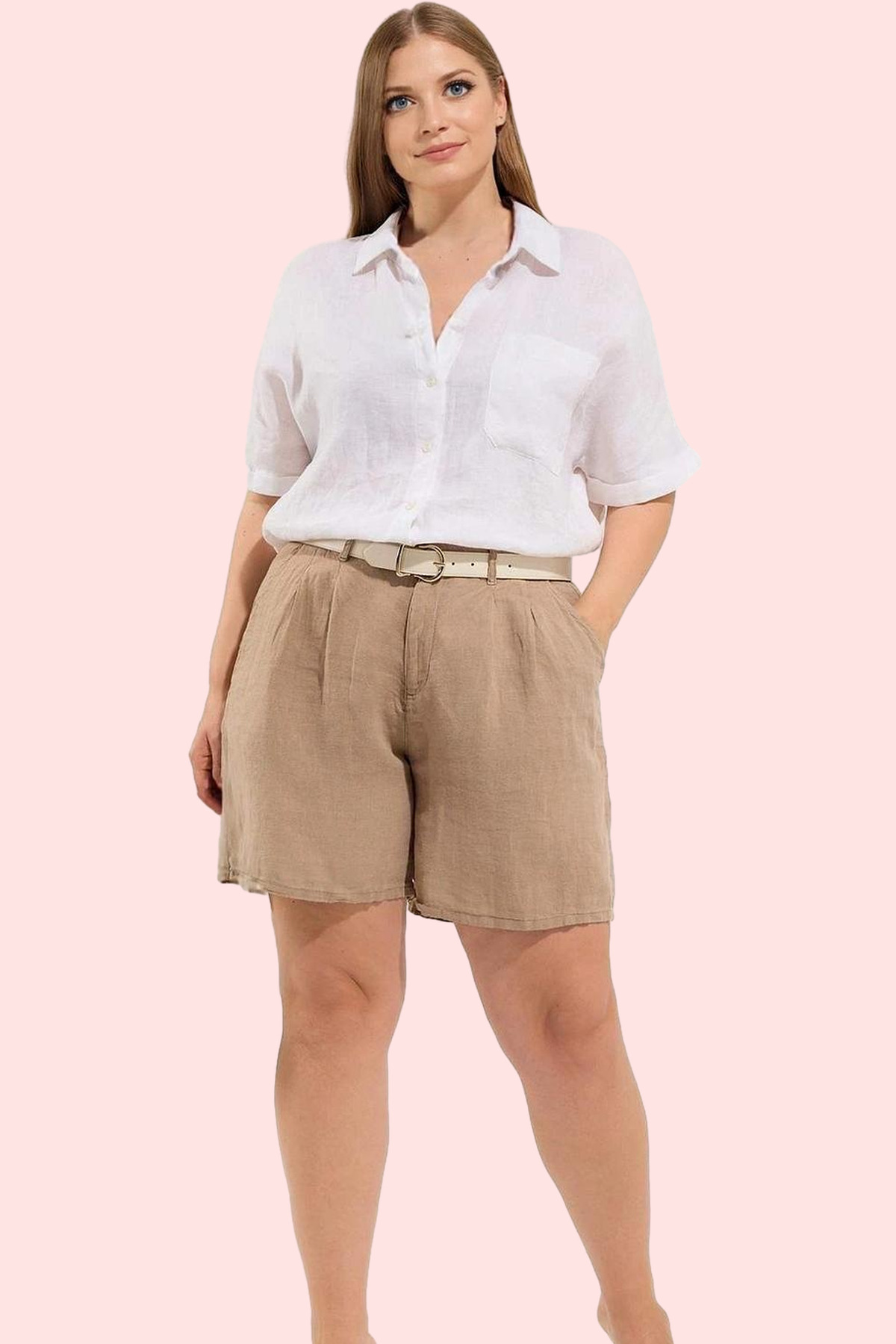 Kadın Düz Şort Etek Yüksek Bel Kemer Detaylı Dokuma Yazlık Günlük Yaz Aylarının Vazgeçilmezi