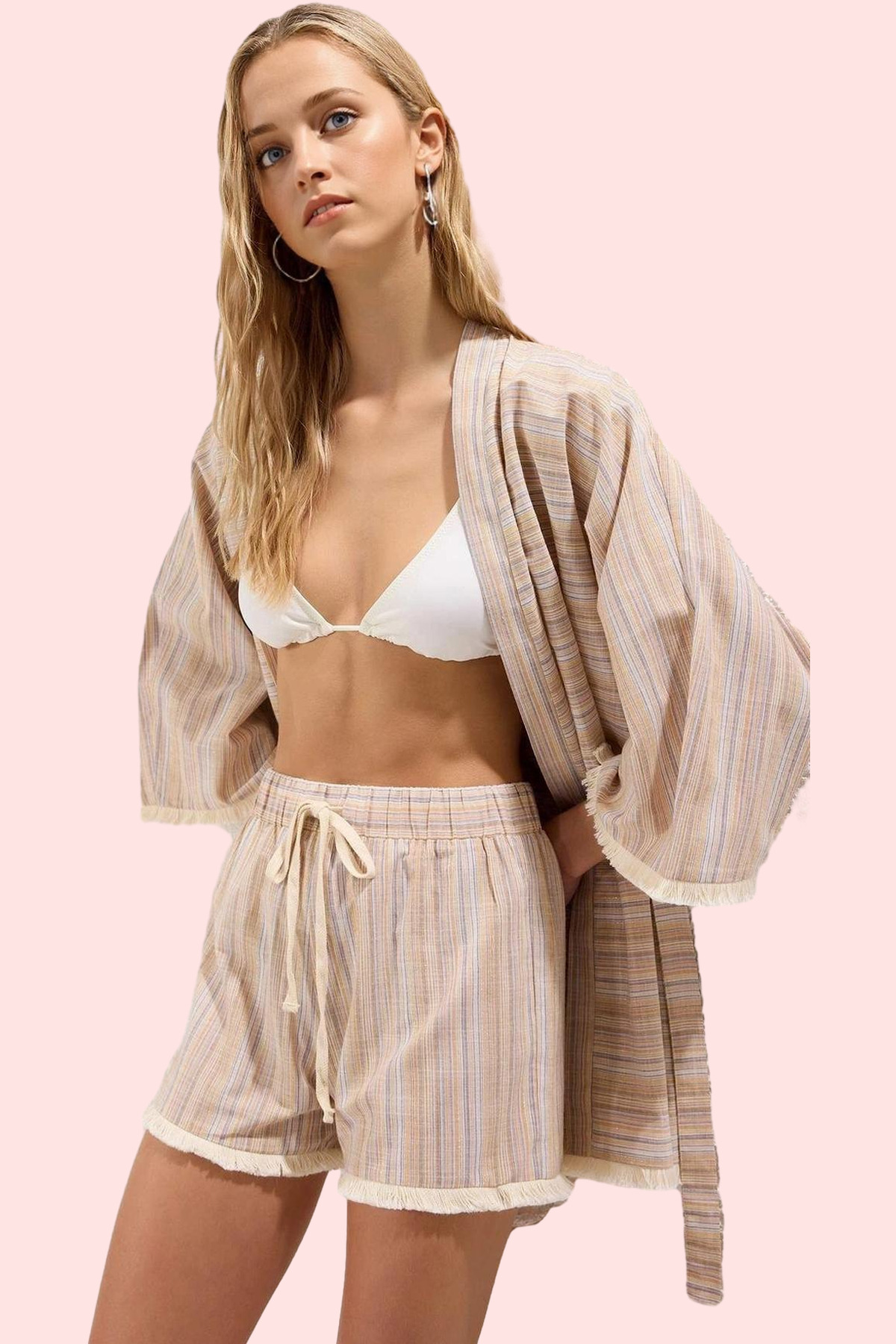 Kadın Çizgili Yüksek Bel Şort Pamuk Rahat Günlük Kombinler Yaz Hafta Sonu Kaliteli Malzeme