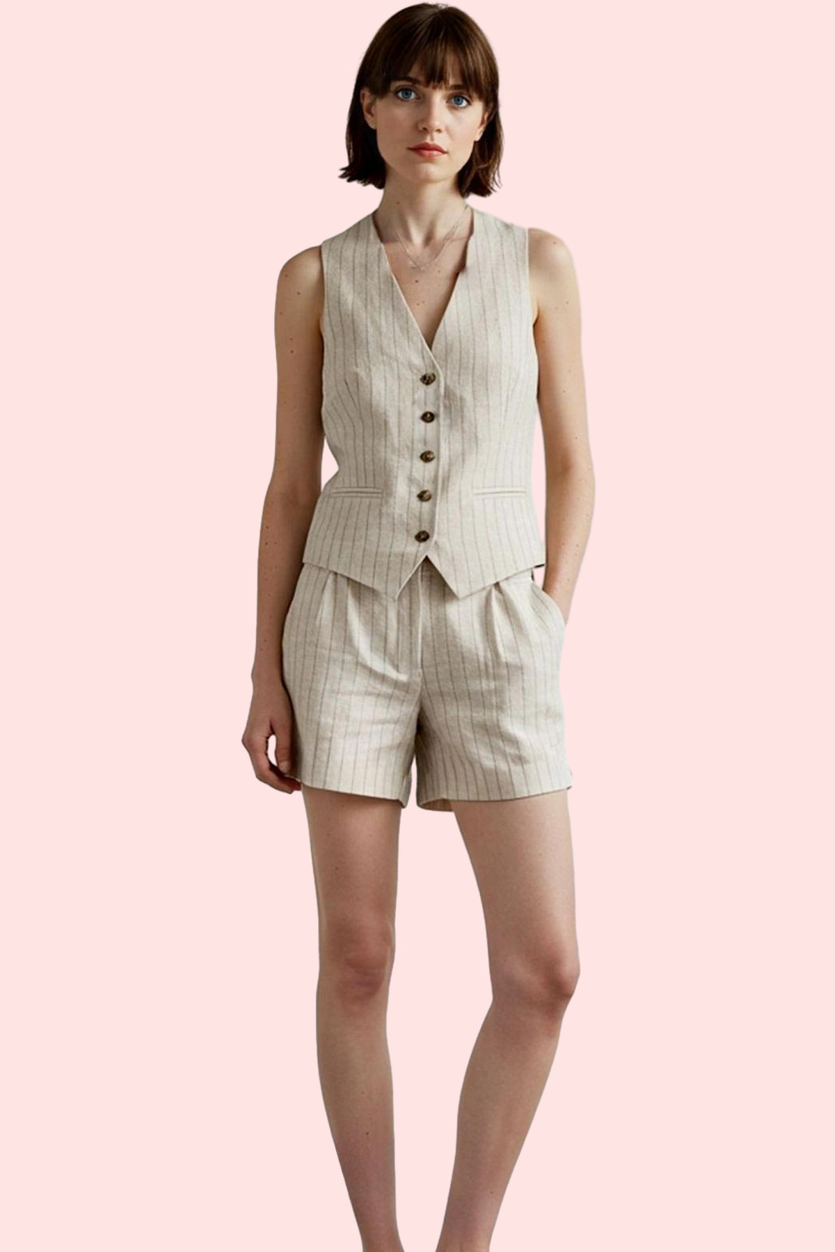 Kadın Çizgili Dokuma Şort Yüksek Bel Straight Siluet Rahat Günlük Kullanım Kaliteli Malzeme