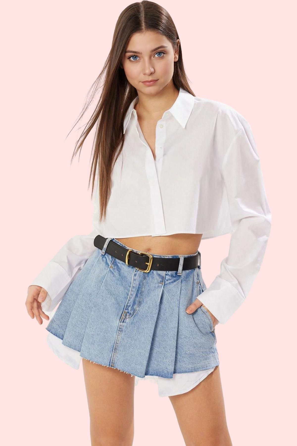 Kadın Yüksek Bel Kemerli Denim Şort Etek Boru Paça Düz Desen Günlük Stil Dayanıklı Malzeme