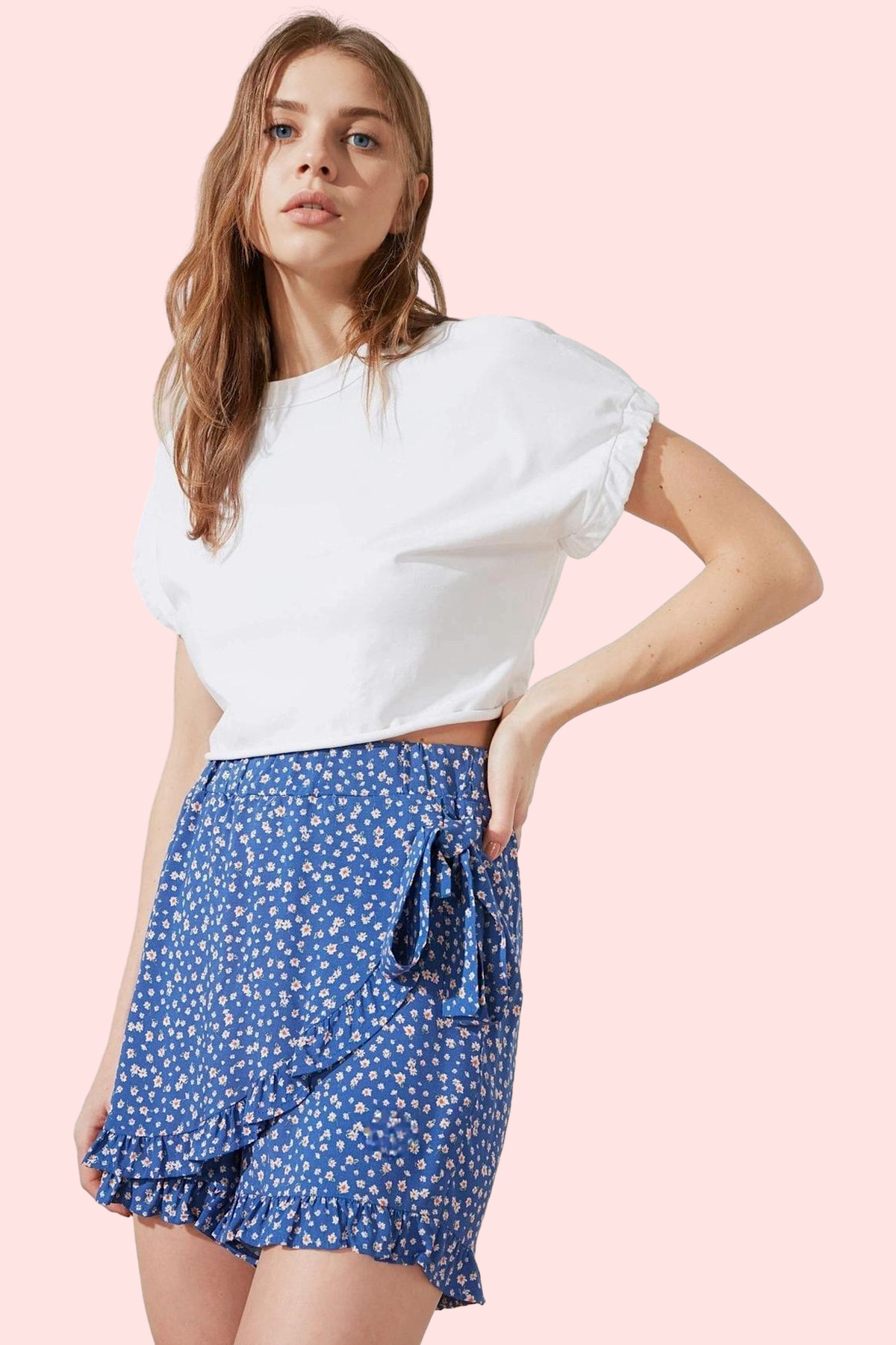 Kadın Çiçekli Dokuma Şort Etek Yüksek Bel Geniş Paça Rahat Kesim Yaz Aylarının Vazgeçilmezi