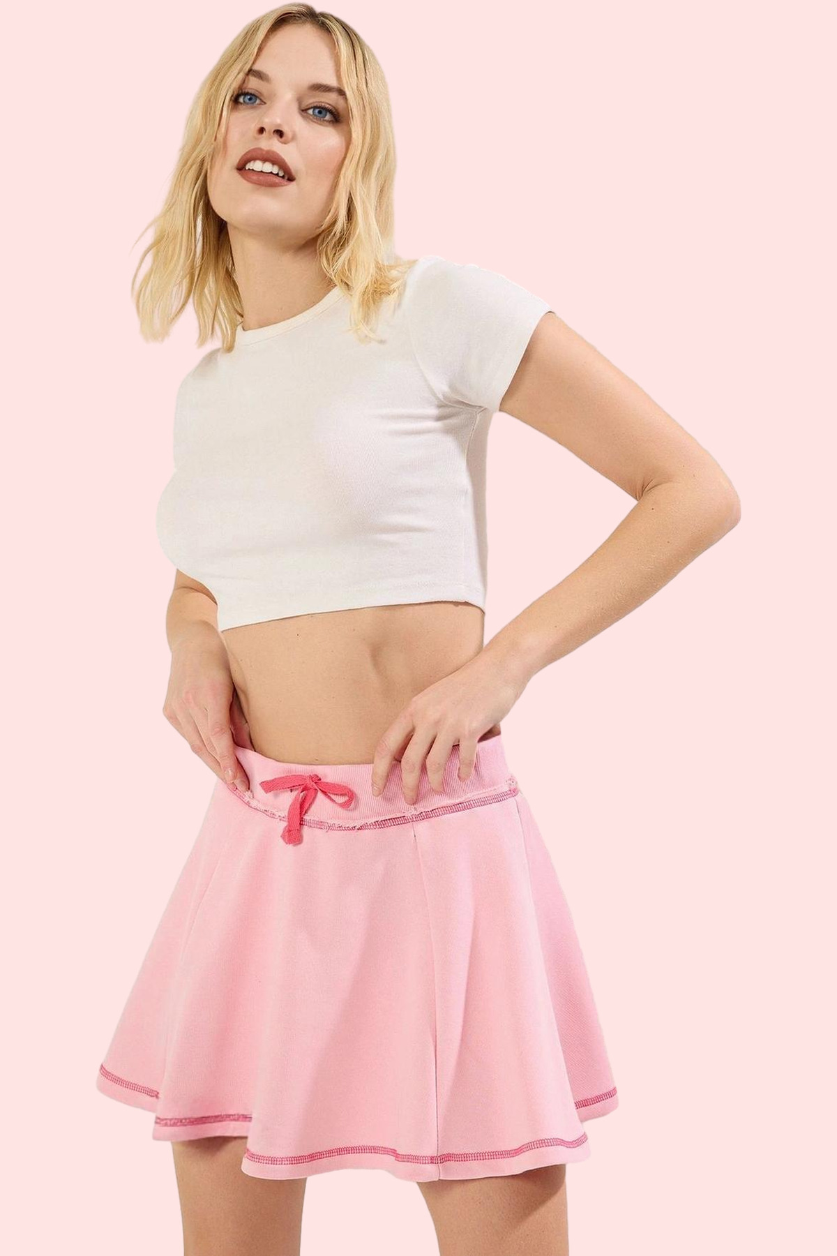 Kadın Yüksek Belli Mini Şort Etek Fiyonk Detaylı Dokuma Poliviskon Rahat Günlük Hafta Sonu