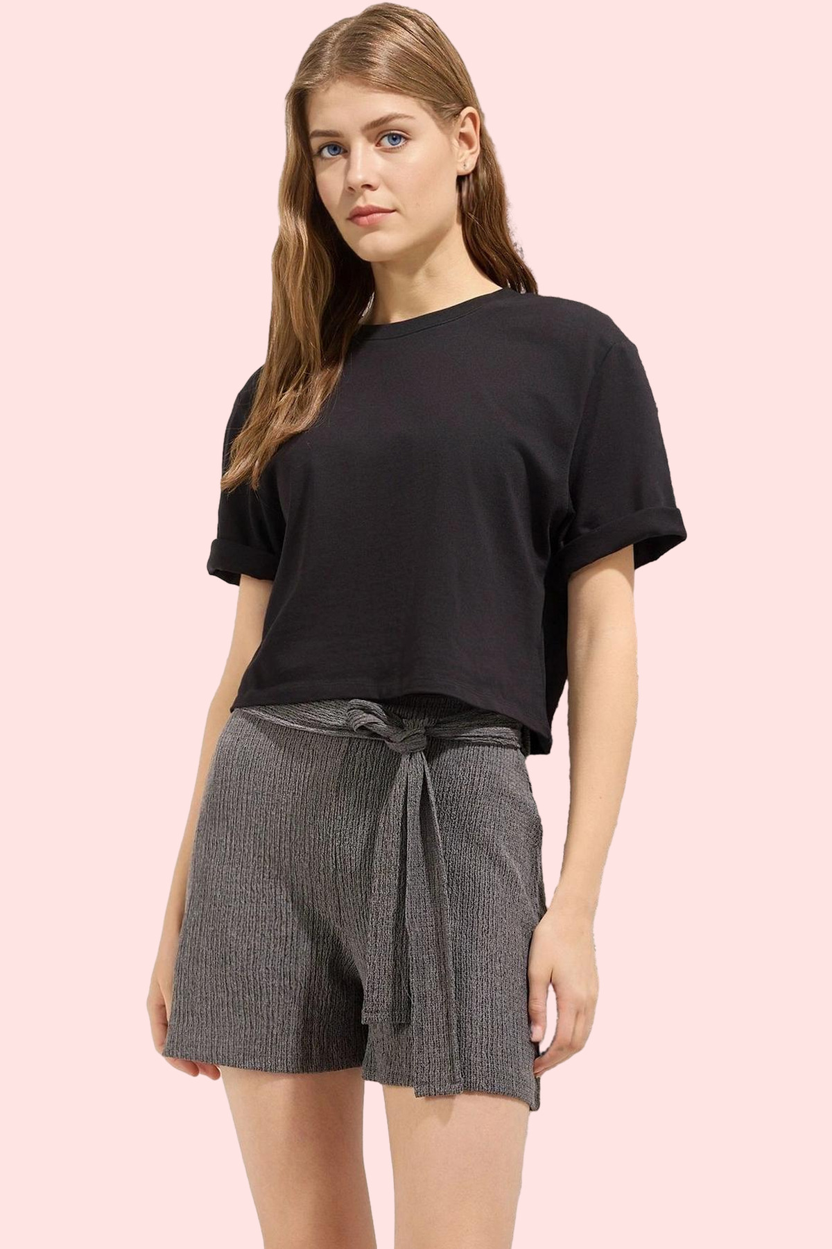 Kadın Kısa Boy Straight Siluet Dokuma Şort Rahat Günlük Kullanım Yaz Aylarının Vazgeçilmezi