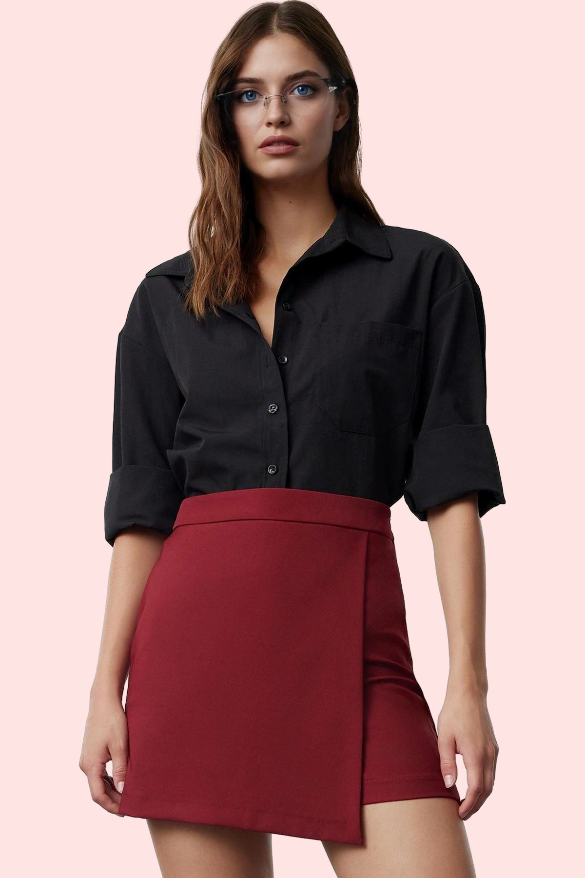 Kadın Pamuklu Tüvit Dokuma Şort Etek Kemer Detayı Casual Tarz Günlük Kullanım Modern Tasarım