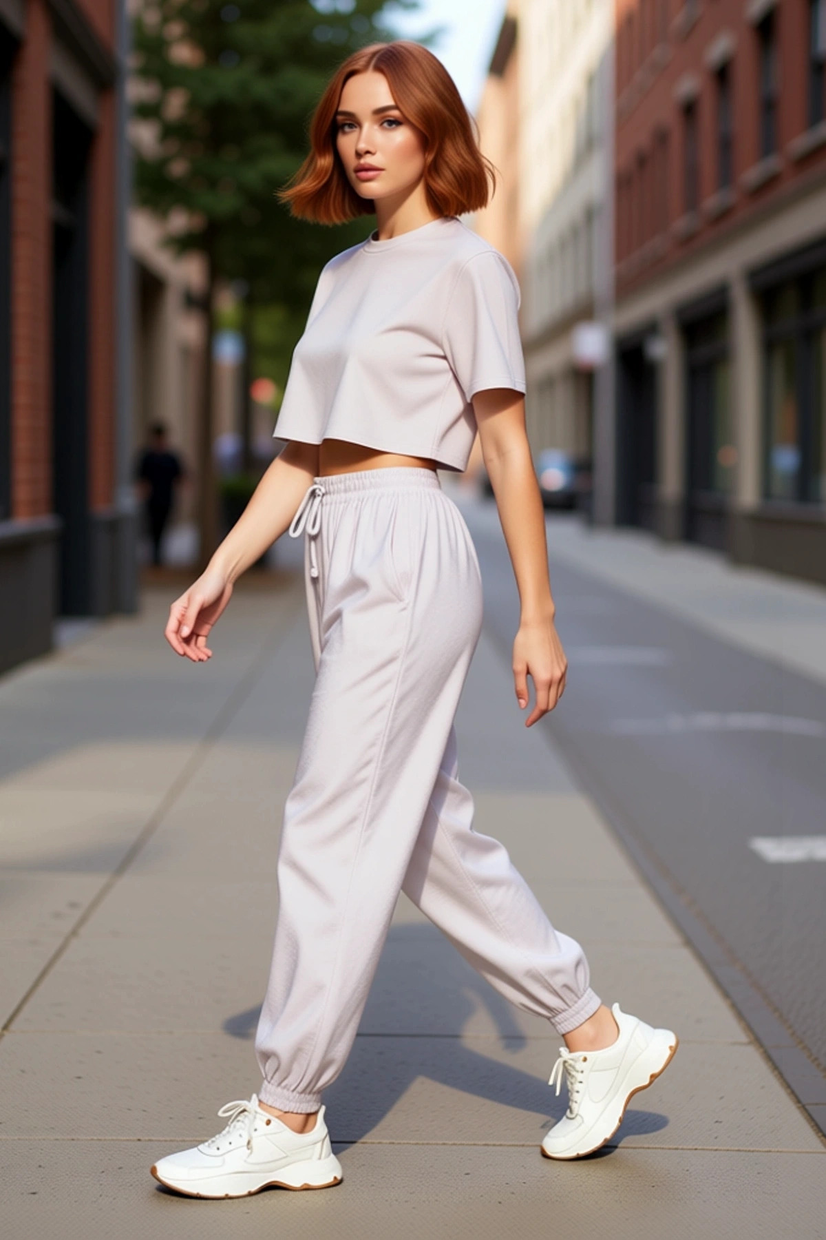 Kadın Dokuma Jogger Pantolon; Rahat Yüksek Bel Lastikli Paça Günlük Kombinler Modern Tasarım