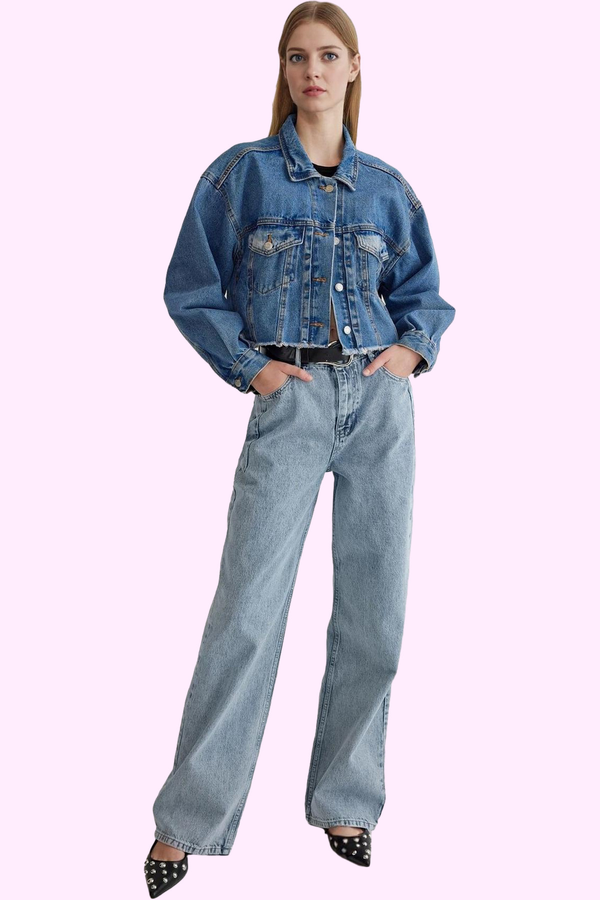Kadın Yüksek Bel Wide Leg Denim Pantolon Fonksiyonel Dayanıklı Kaliteli Konforlu Estetik Şık