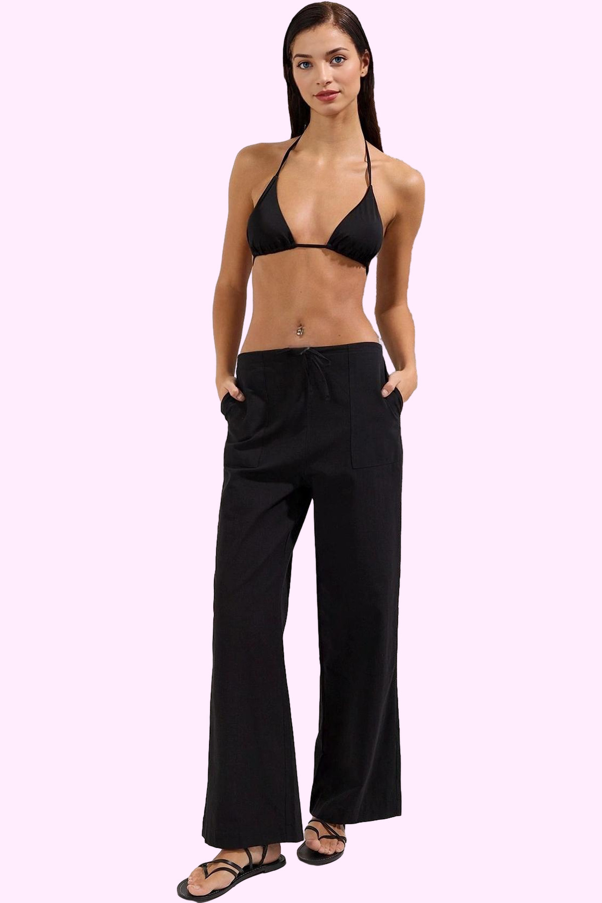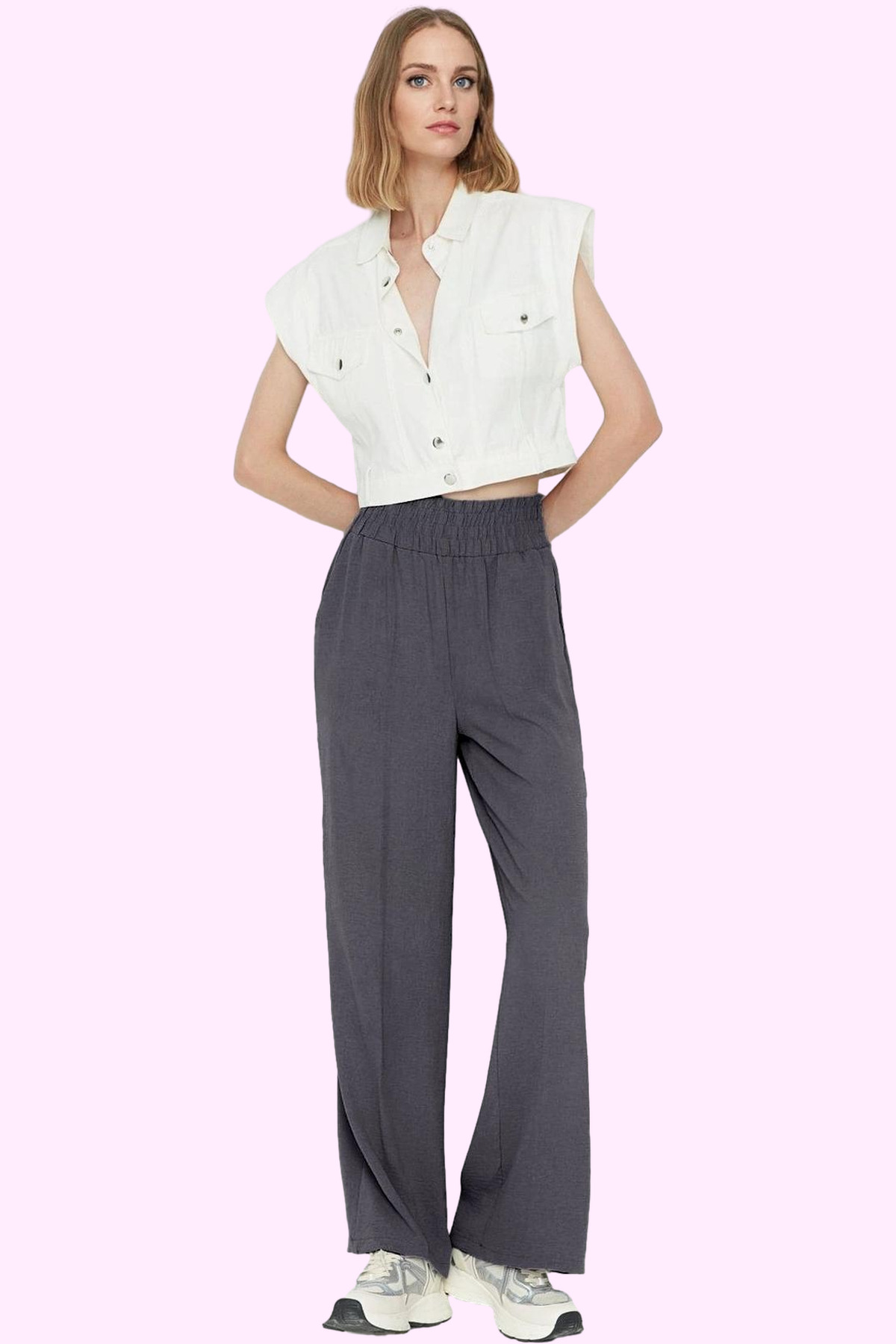 Kadın Yüksek Bel Bol Kesim Keten Pantolon Fonksiyonel Dayanıklı Kaliteli Konforlu Estetik Şık