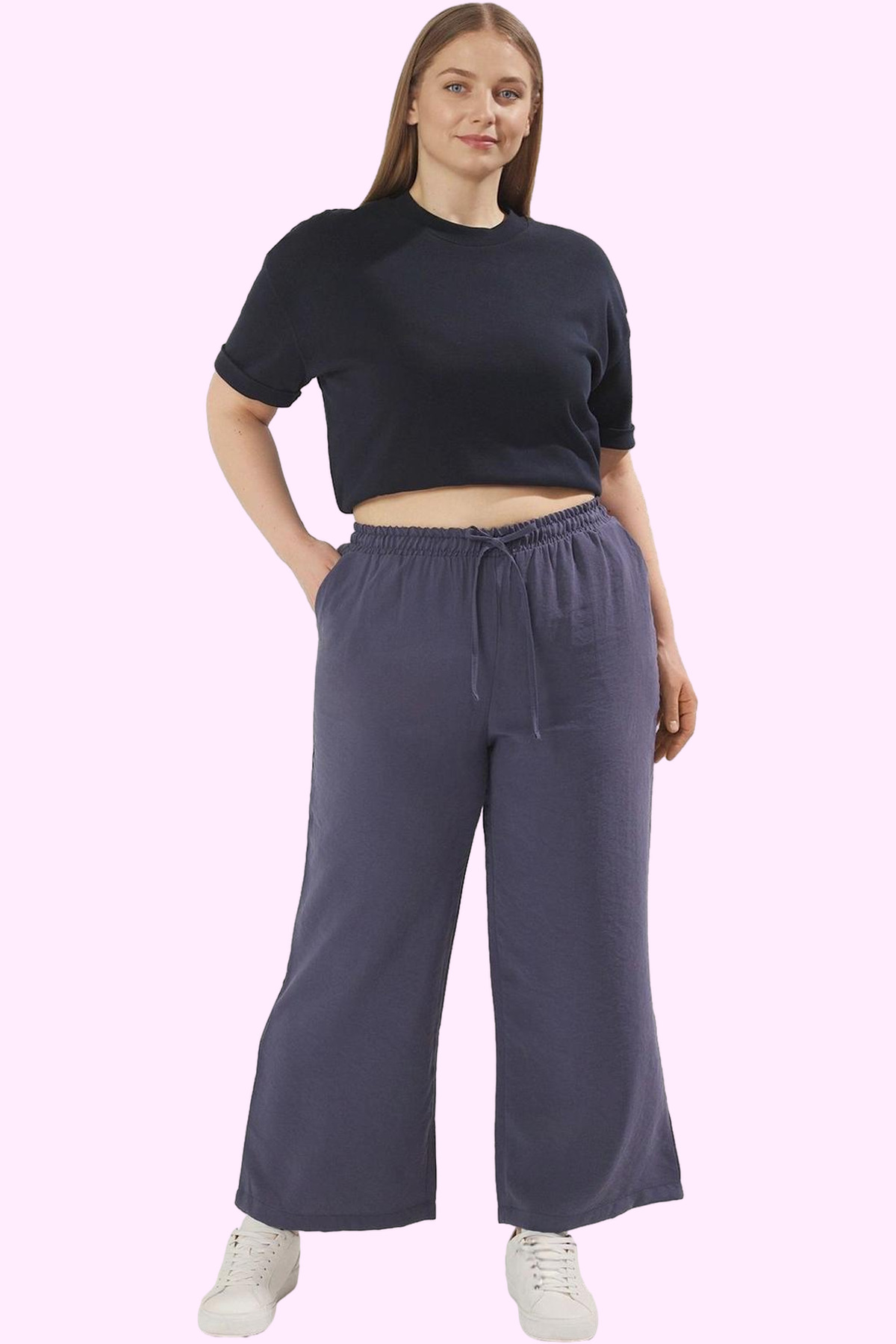 Kadın Yazlık Crinkle Dokuma Geniş Paça Pantolon Rahat ve Şık Günlük Kullanım Modern Tasarım