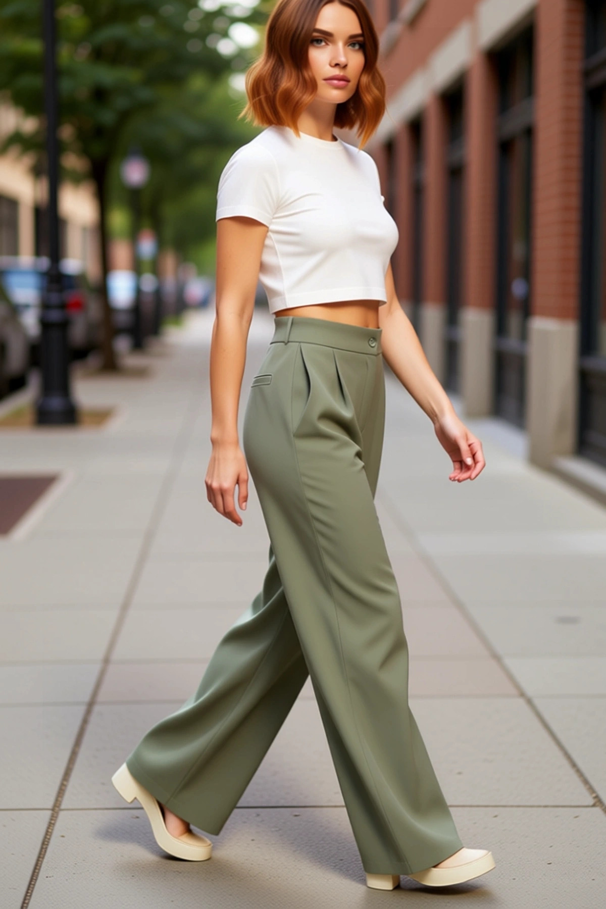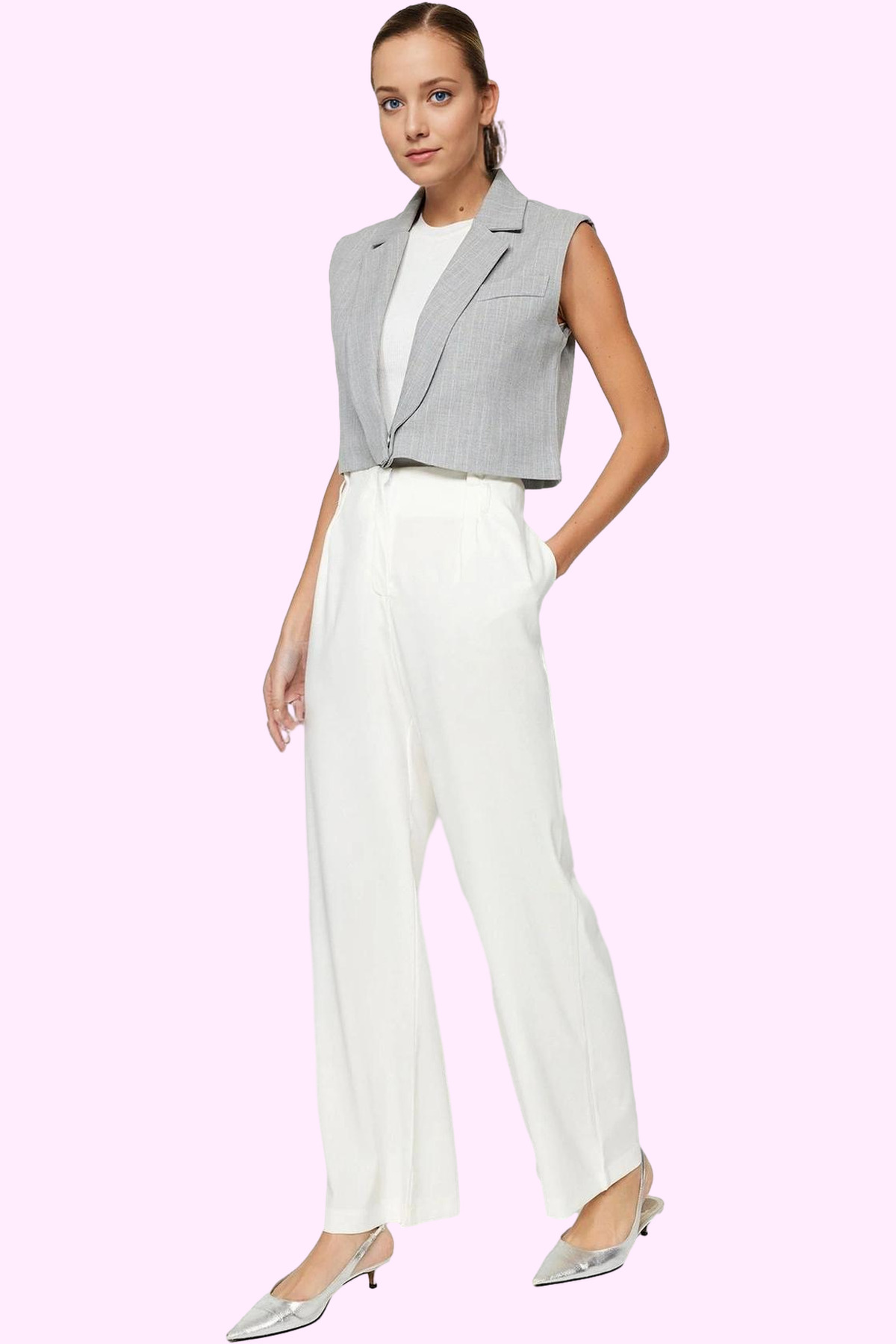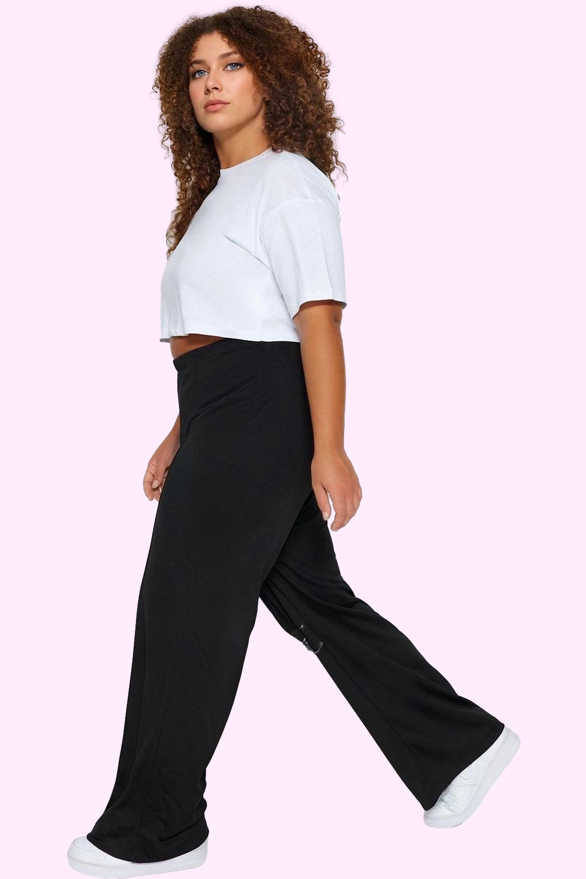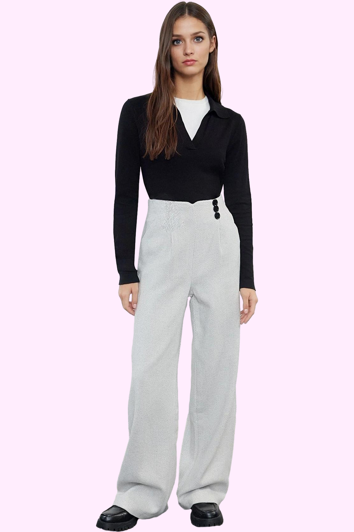 Kadın Regular Yüksek Bel Geniş Paça Pantolon Düz Desen Casual Kış Yaz Aylarının Vazgeçilmezi