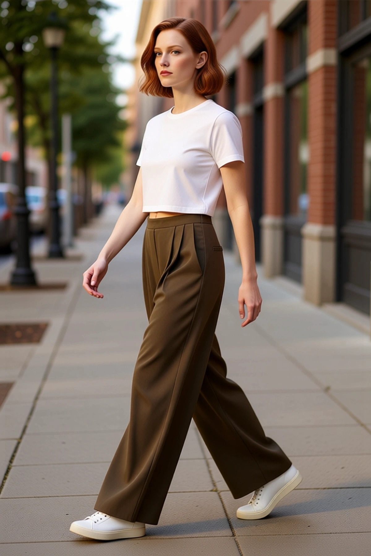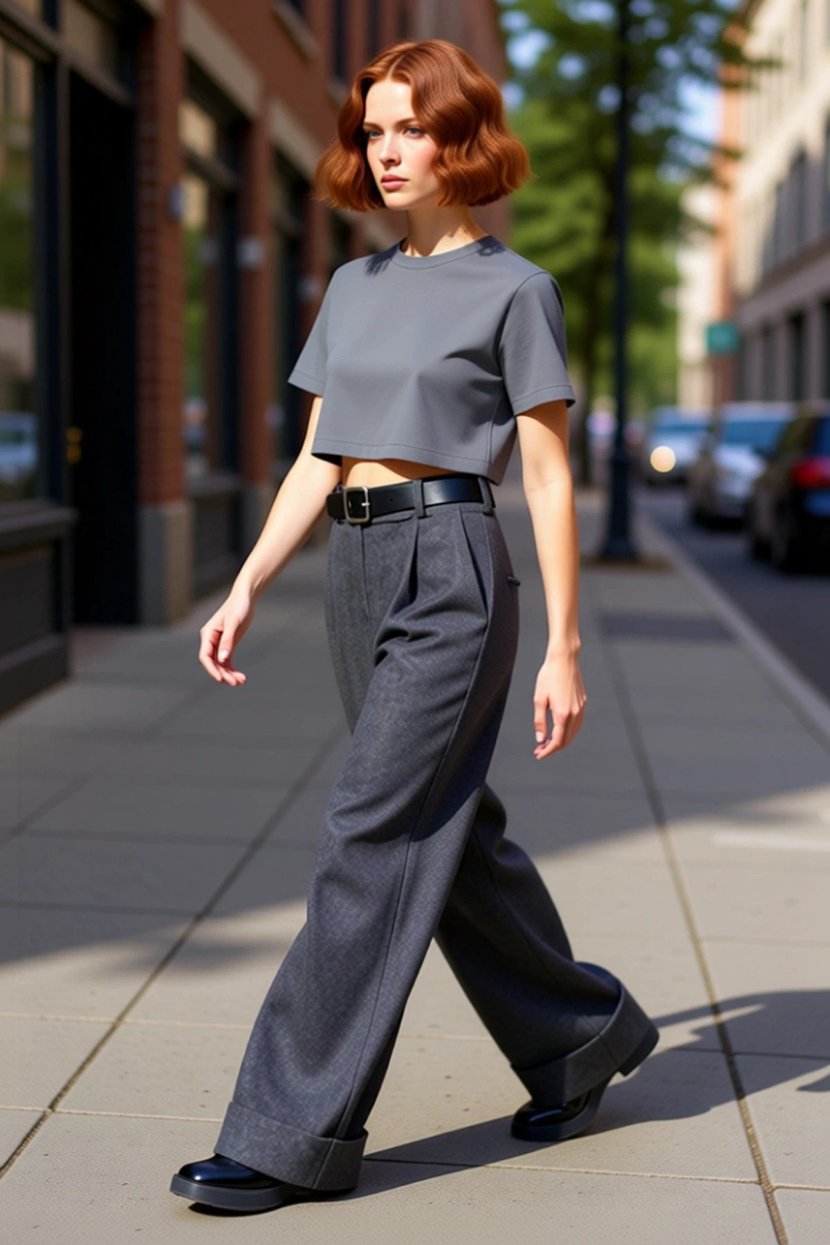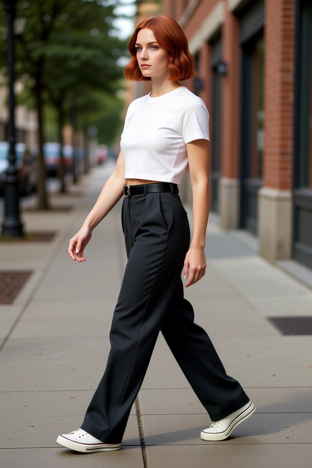 Kadın Yüksek Bel Düz Paça Kemerli Dokuma Pantolon Fonksiyonel Dayanıklı Kaliteli Konforlu Şık