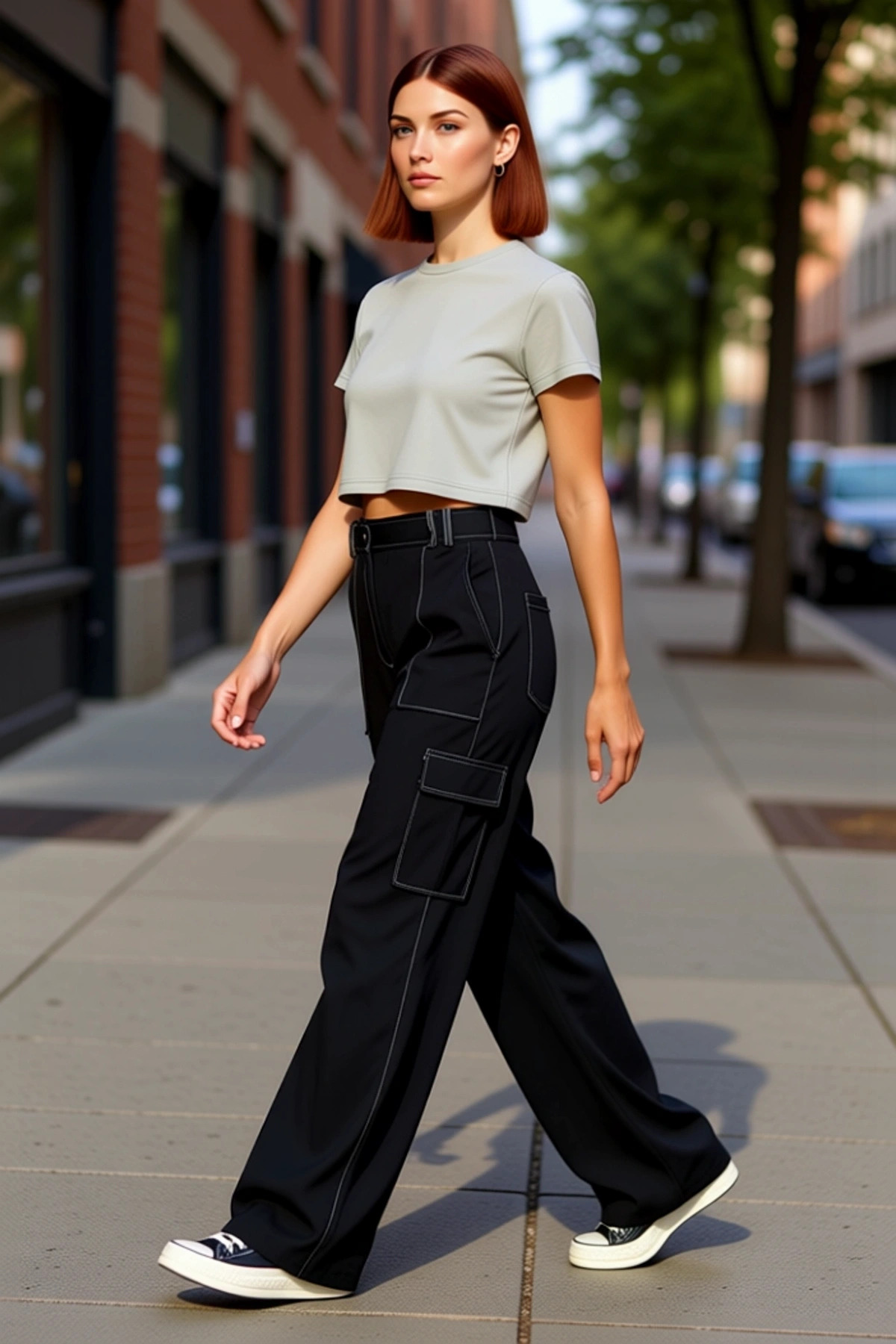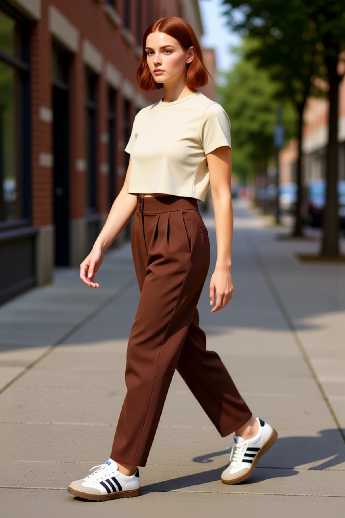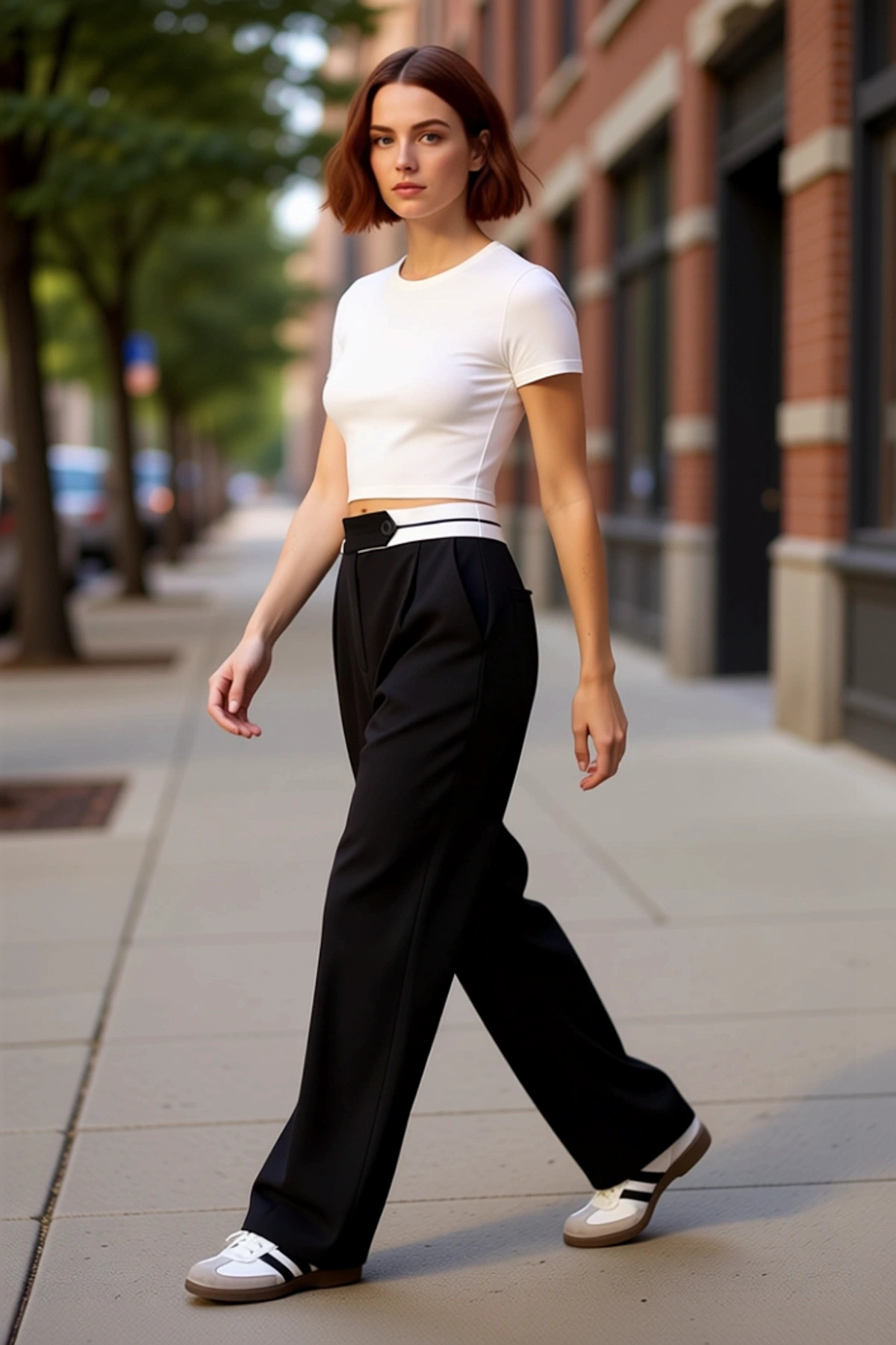 Kadın Yüksek Bel Düz Paça Kemerli Dokuma Pantolon Fonksiyonel Dayanıklı Kaliteli Konforlu Şık
