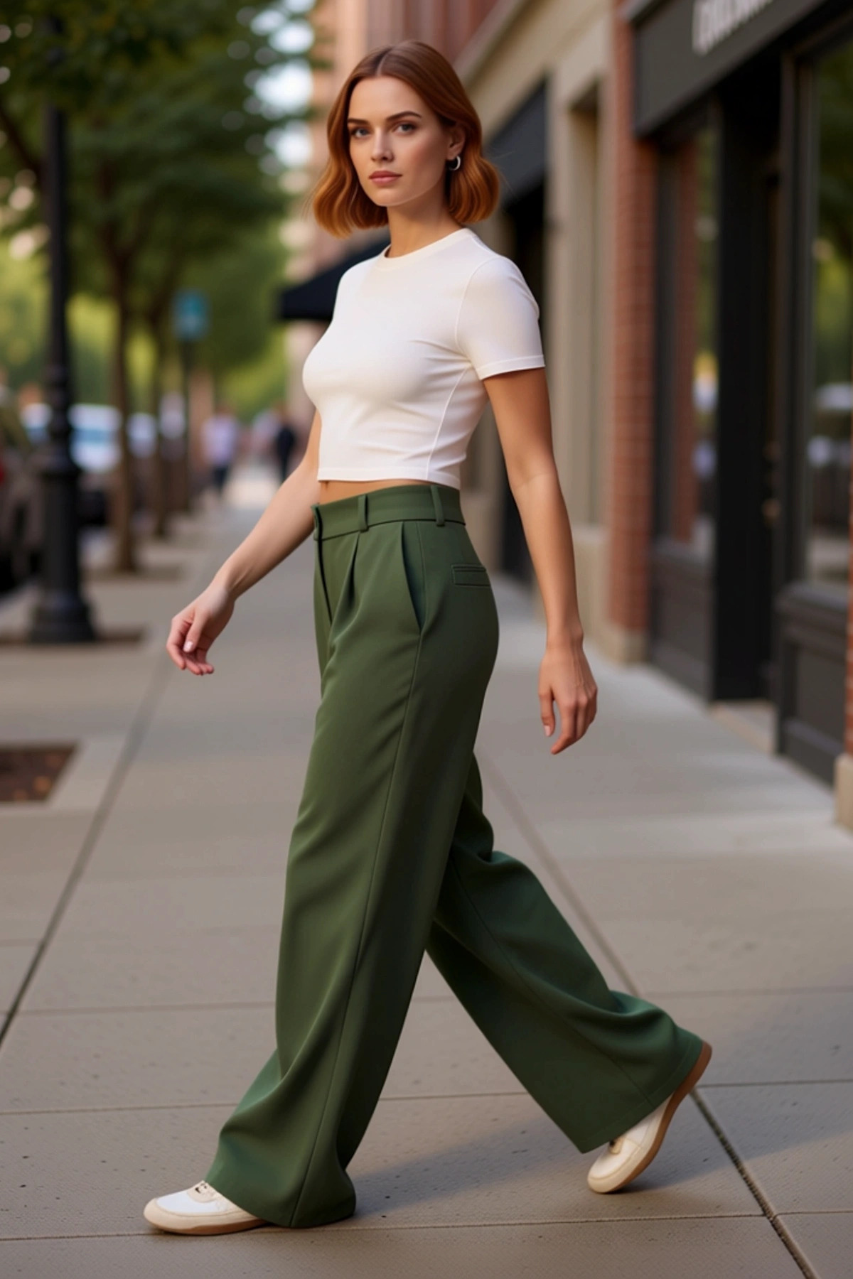 Kadın Haki Wide Leg Pilili Dokuma Kumaş Pantolon Fonksiyonel Dayanıklı Kaliteli Konforlu Şık