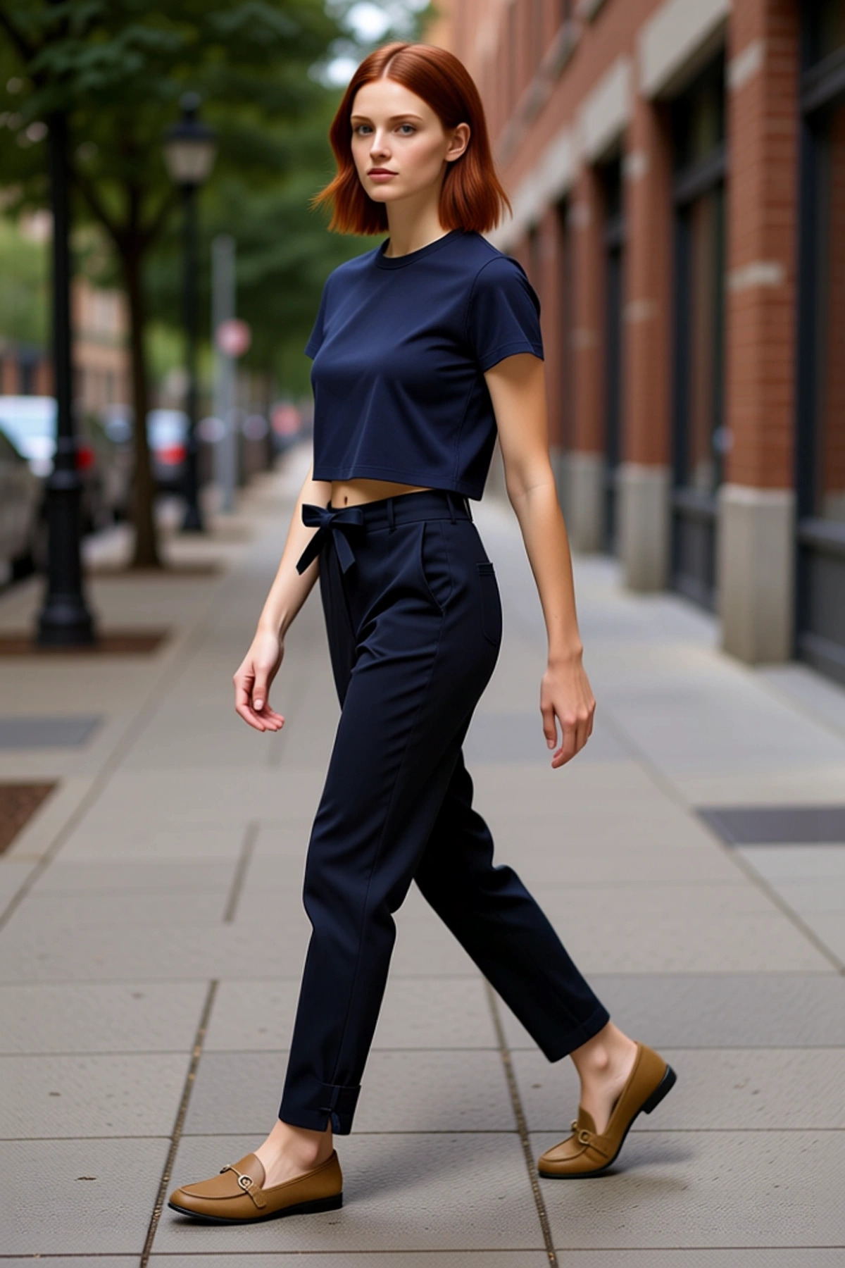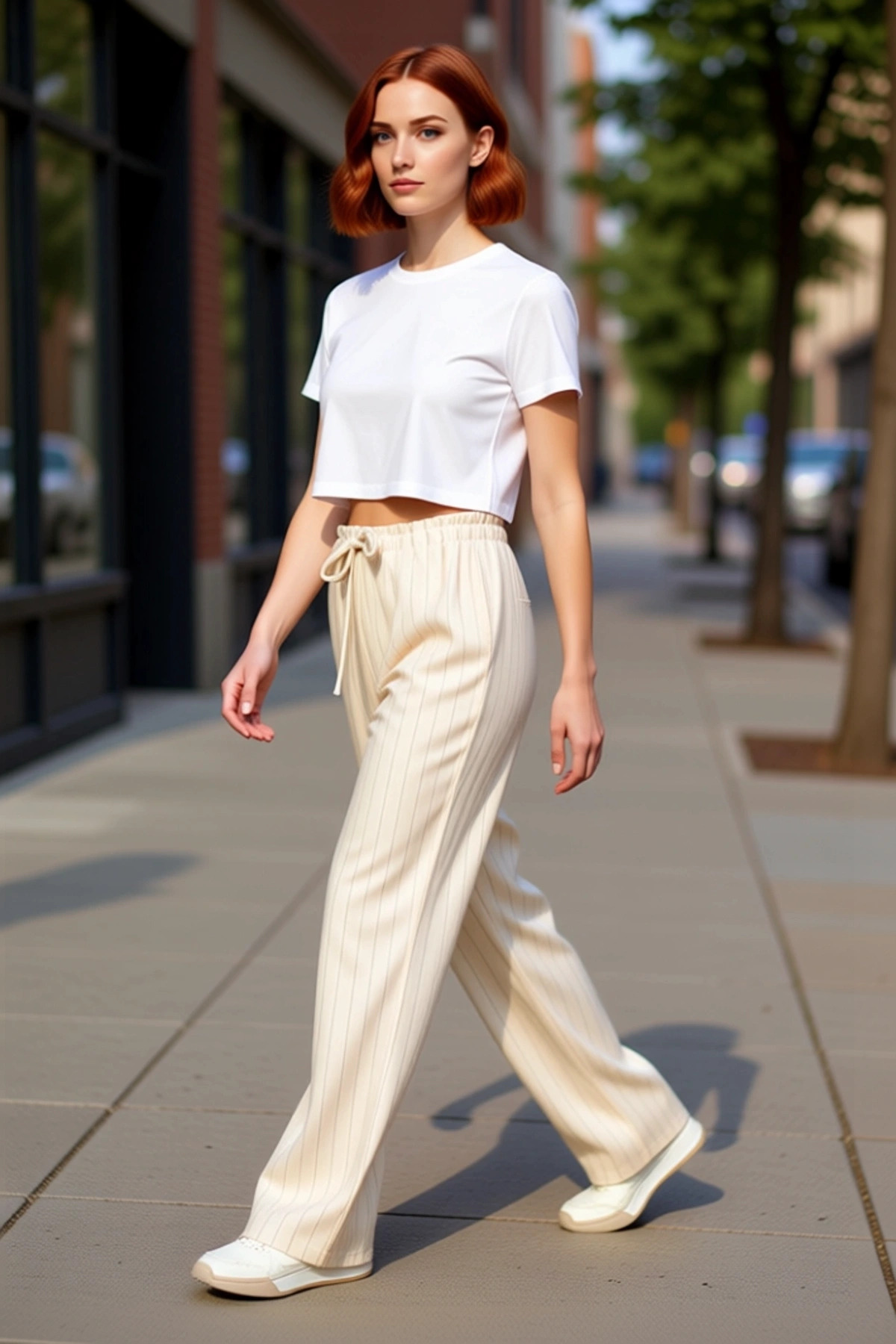 Kadın Çizgili Yüksek Bel Straight Kesim Pantolon Fonksiyonel Dayanıklı Kaliteli Konforlu Şık
