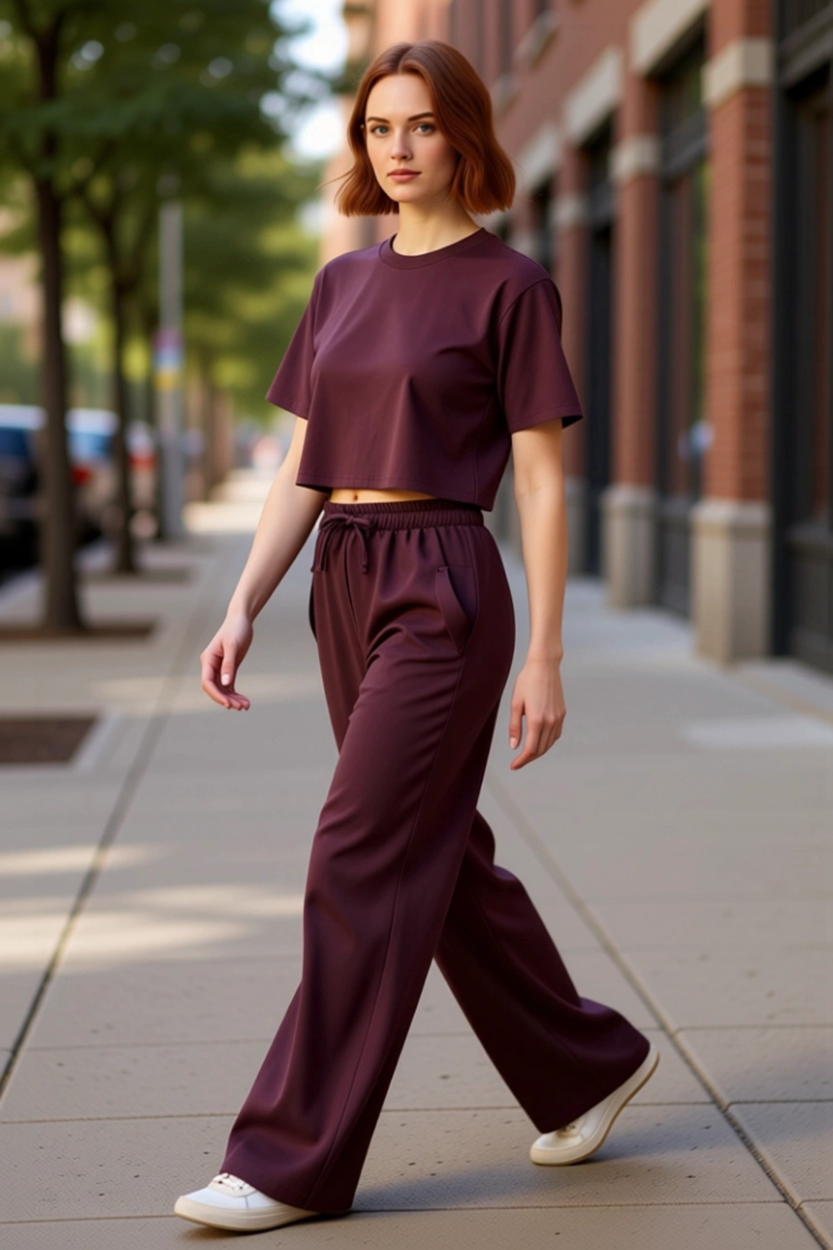 Kadın Mürdüm Geniş Paça Pantolon Konforlu Tasarım Fonksiyonel Dayanıklı Kaliteli Estetik Şık