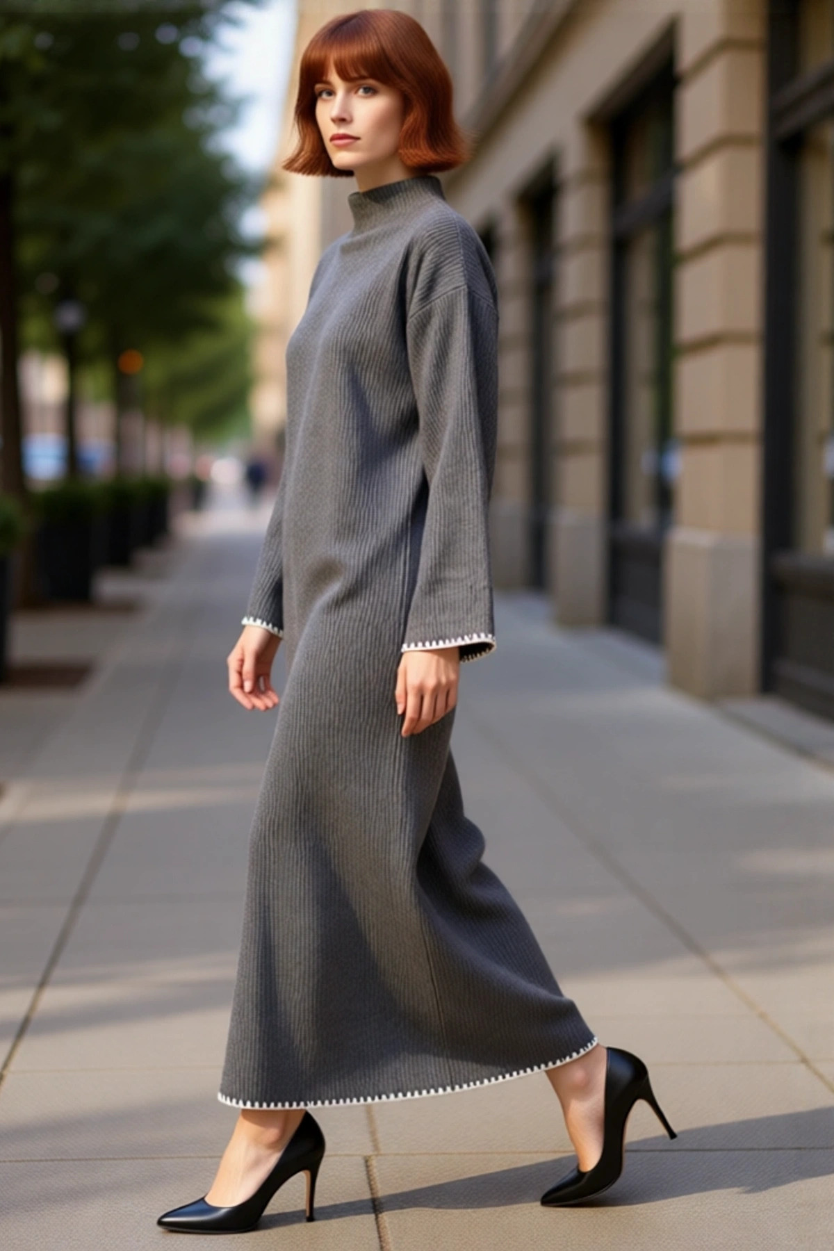 Kadın Casual Dik Yaka Düşük Kollu Maxi Boy Triko Elbise Rahat Shift Kalıp Kış Kombinleri İçin