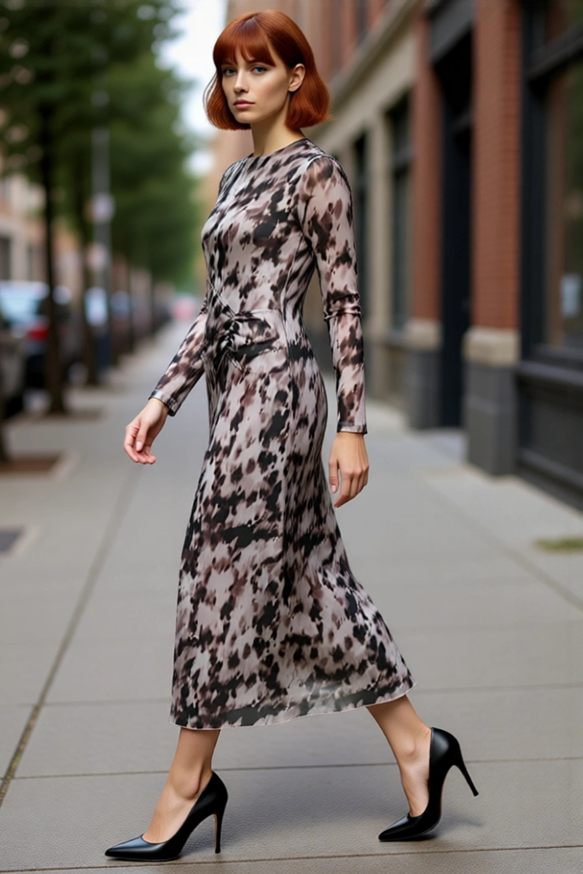 Kadın Şık Bodycon Kahverengi Uzun Kol Maxi Elbise Carmen Yaka ile Gece Davetleri İçin Kaliteli