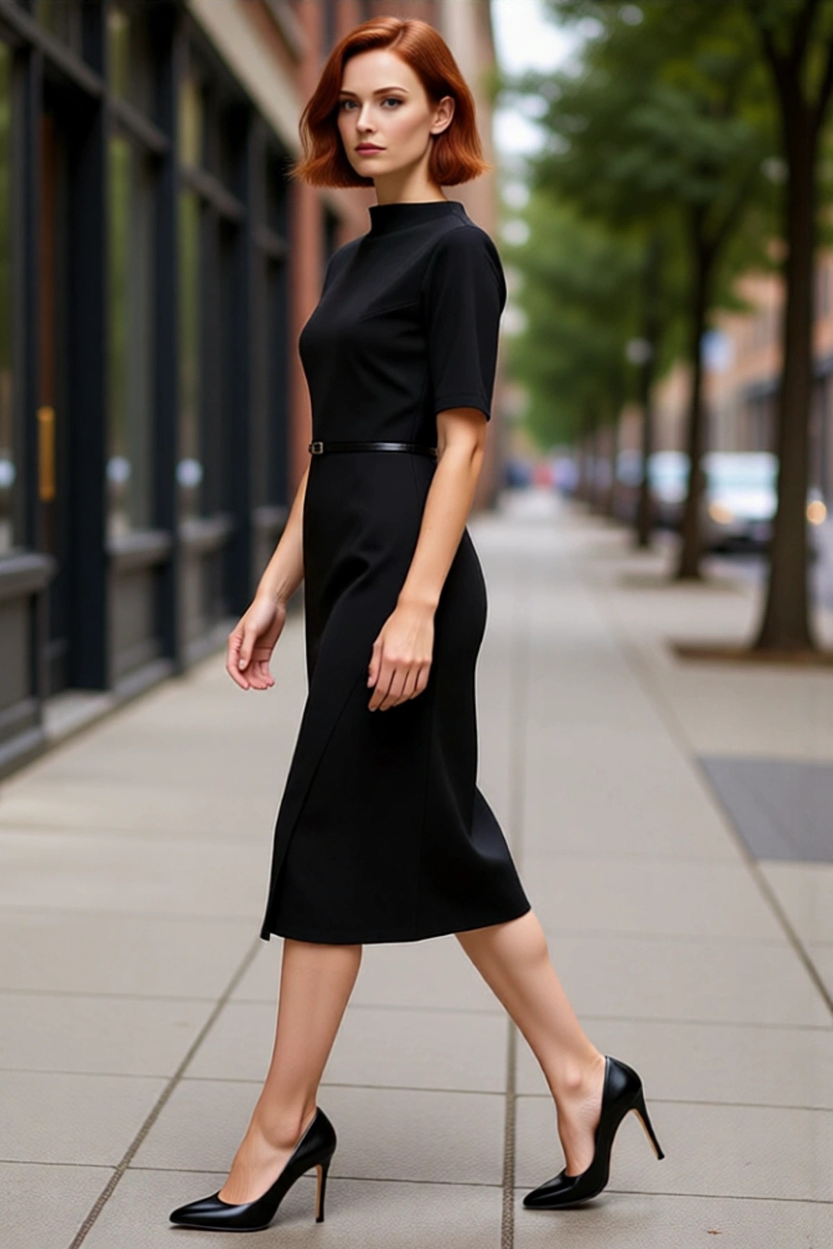 Kadın Kemerli A Kesim Kayık Yaka Uzun Kollu Dokuma Mini Elbise Modern İş ve Günlük Kombinler İçin