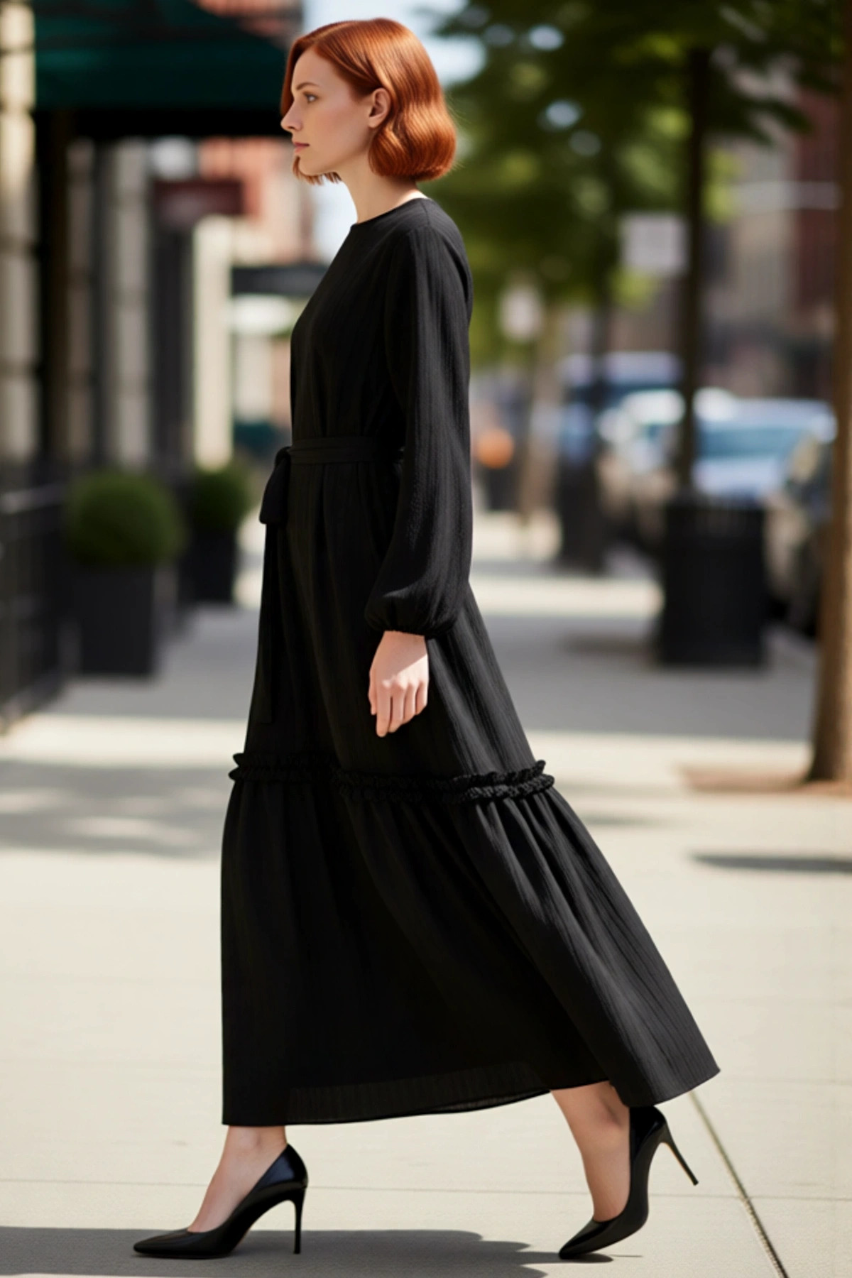 Kadın Siyah Dokuma Shift Kalıp Maxi Jile Elbise Gold Düğme Detaylı Bisiklet Yaka Kış Sezonu Şıklığı