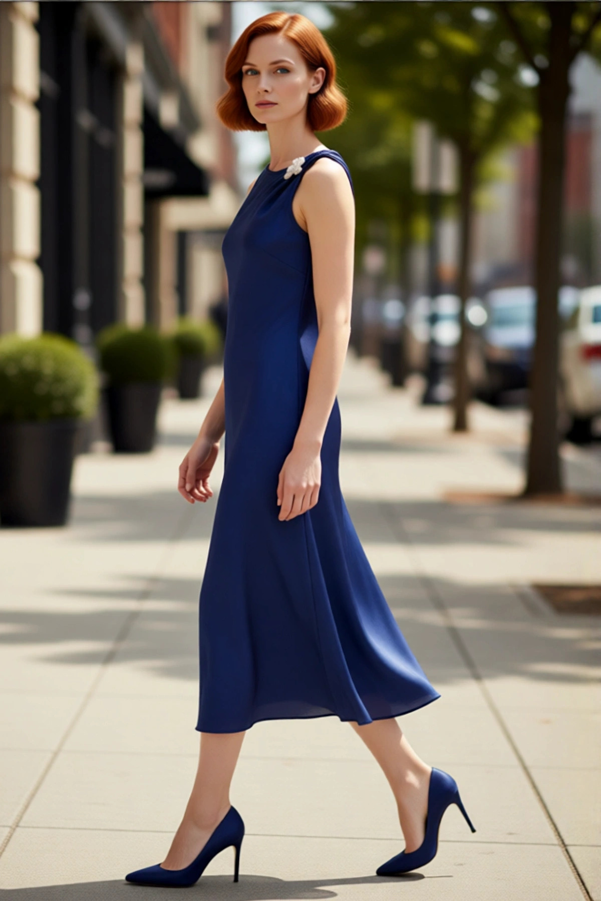 Kadın Lacivert Aerobin Dokuma Maxi Boy Hakim Yaka Britli Düz Rahat Şık Günlük Elbise Kaliteli