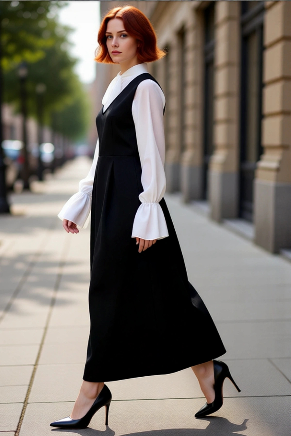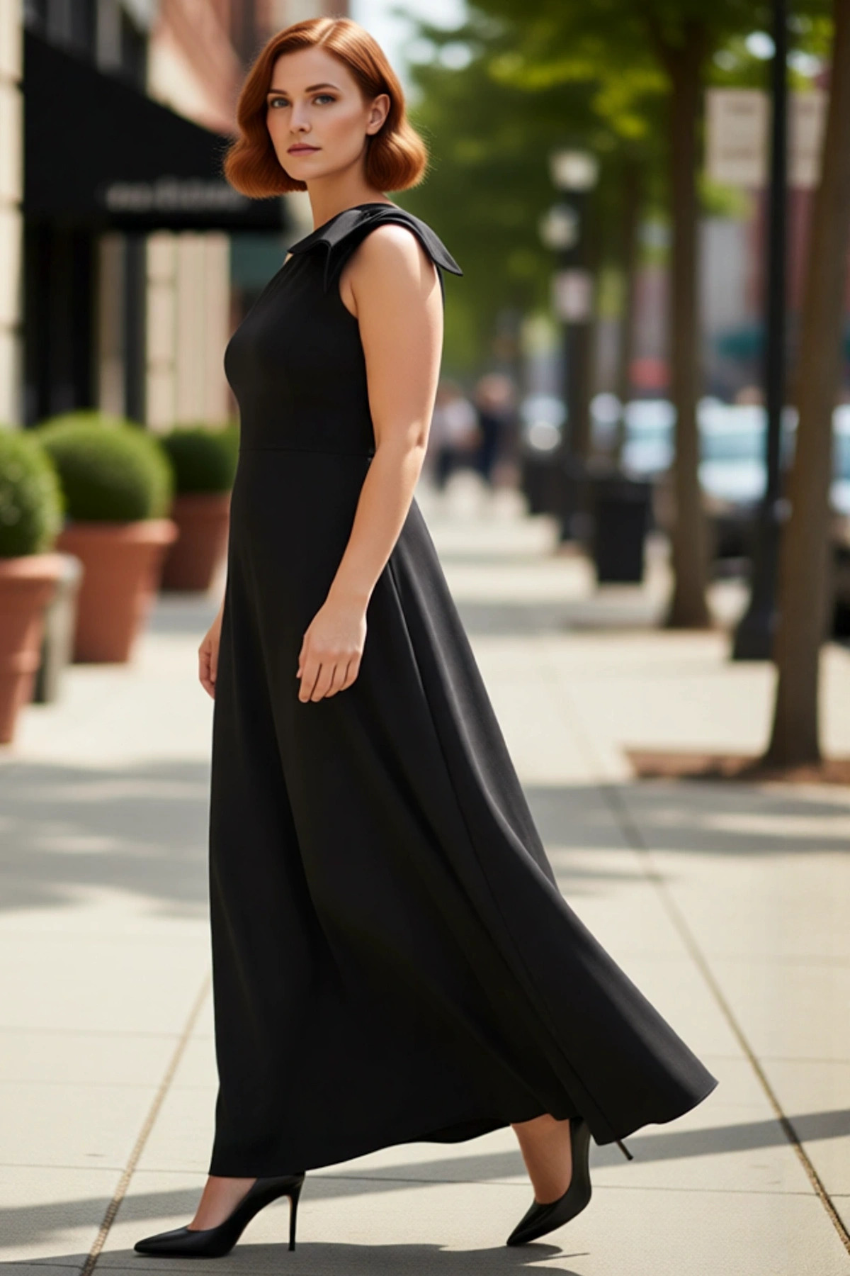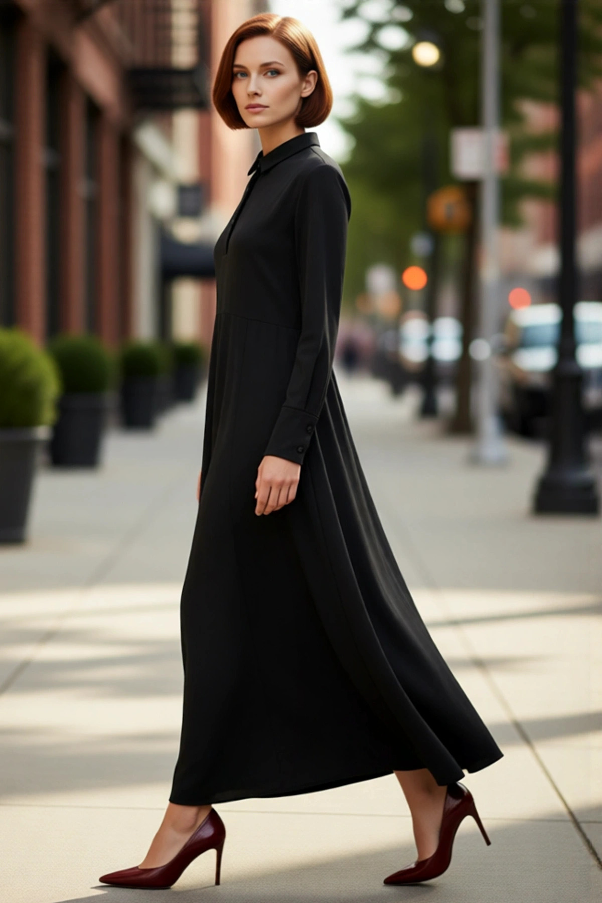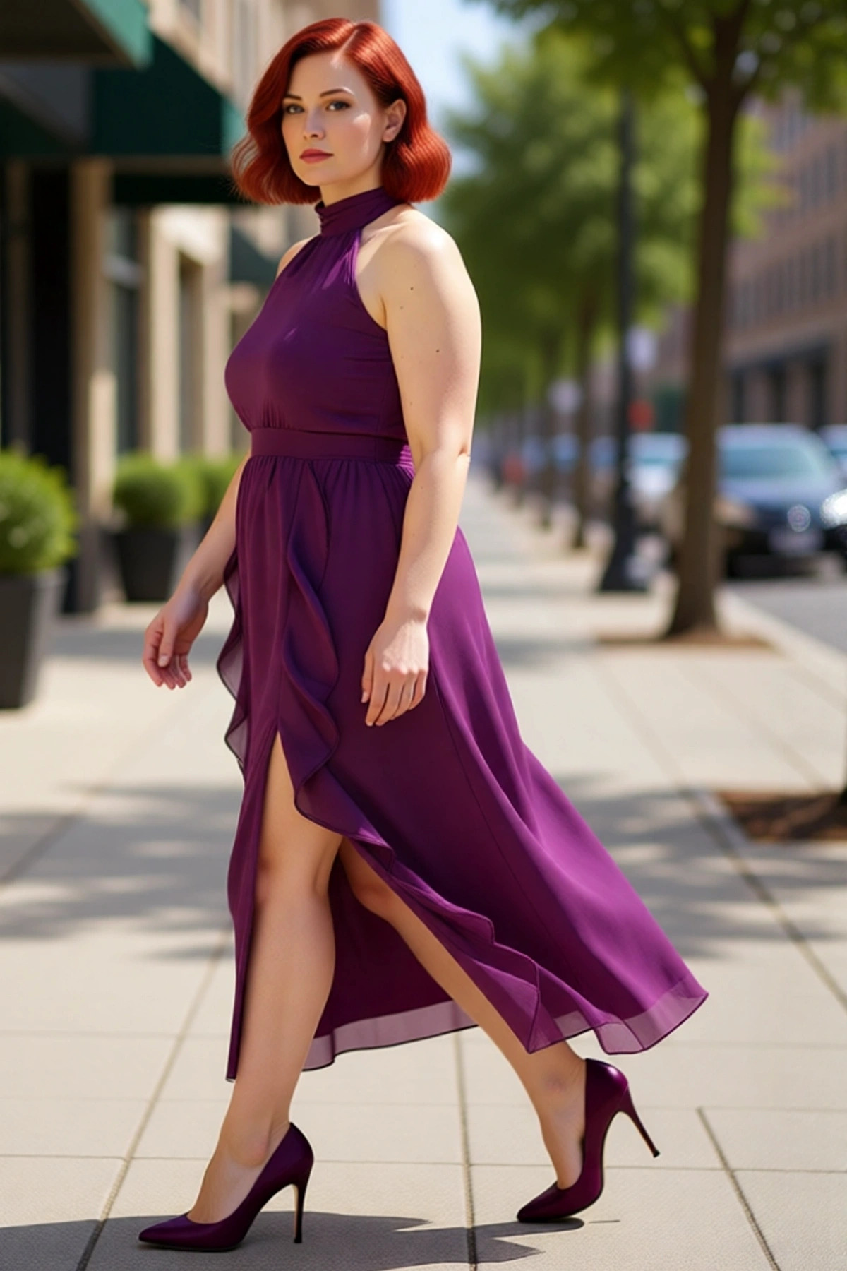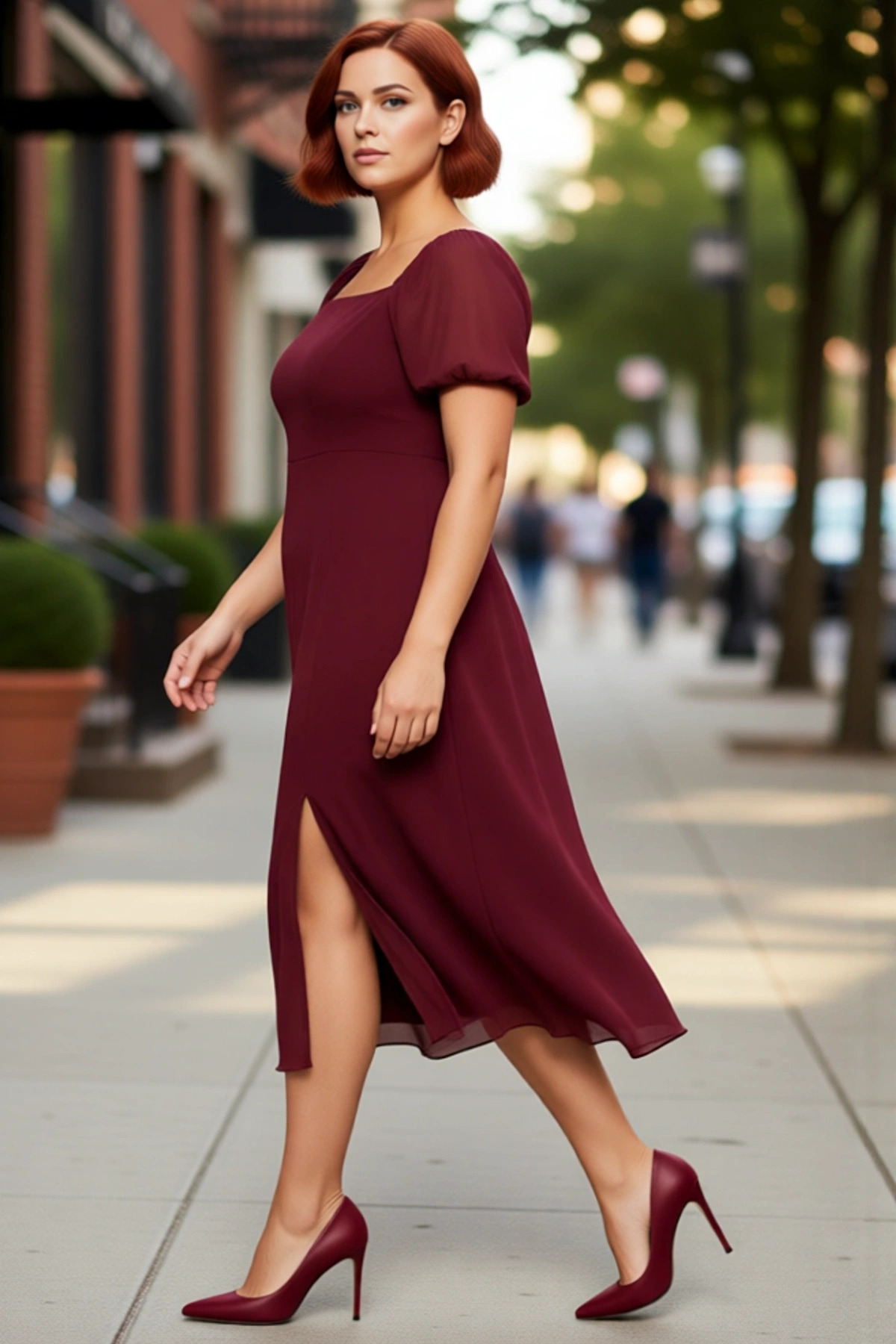 Kadınlara Özel Büyük Beden Kare Yaka Balon Kollu Astarlı Midi Boy Şifon Yırtmaçlı Elbise Kaliteli