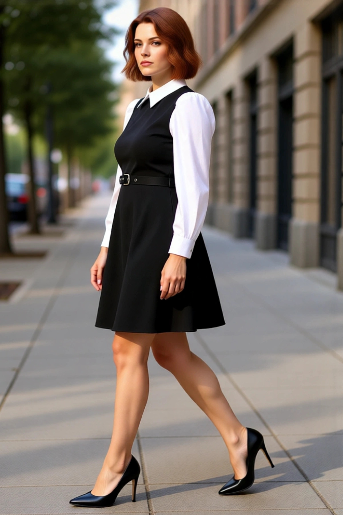 Kadınlara Özel Bodycon Kesim Renk Bloklu Gömlek Yaka Mini Elbise Uzun Kol Ofis ve Sosyal Ortamlar