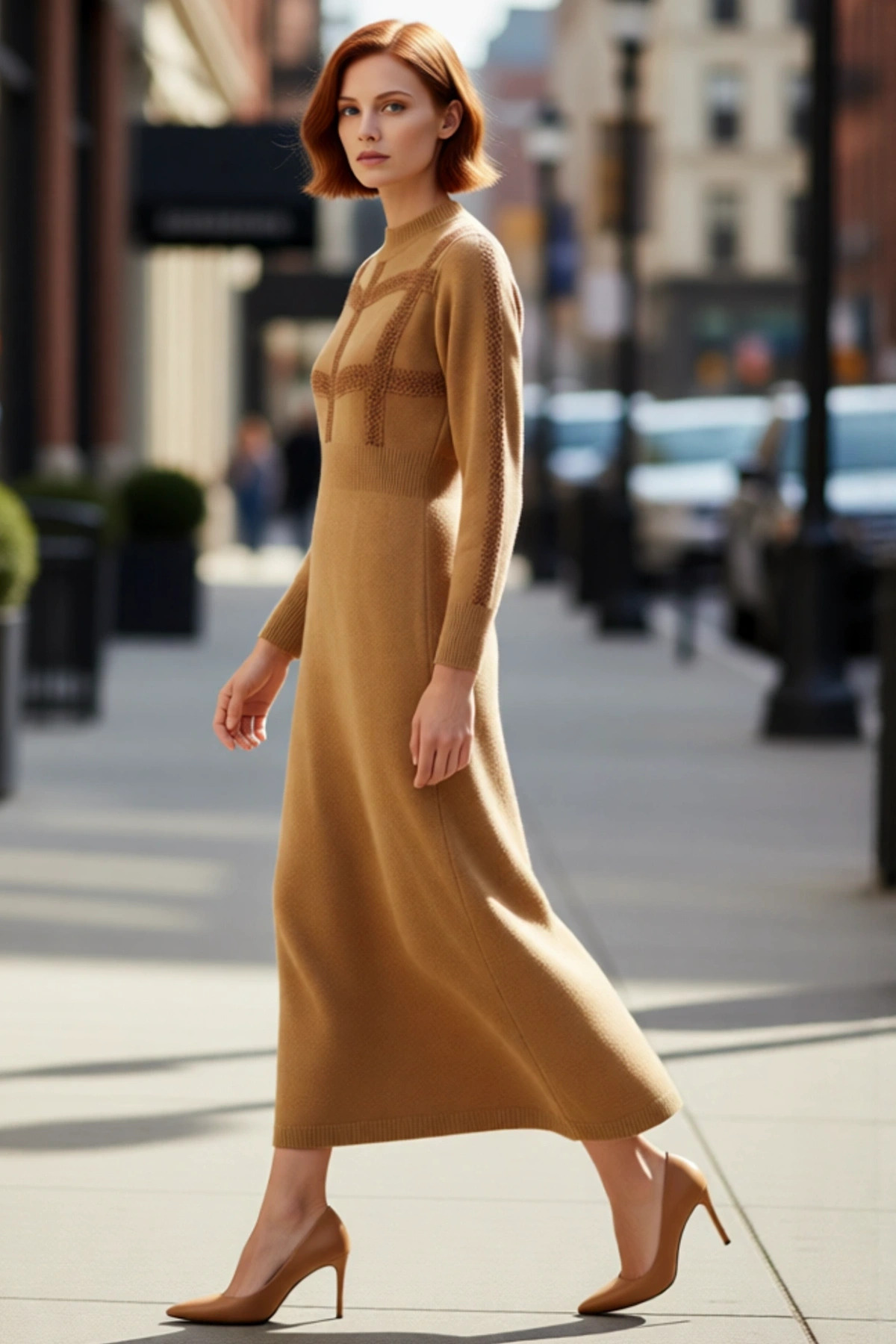 Kadın Şık Bodycon Midi Elbise Dik Yaka Kolsuz Tasarım Düz Örme İlkbahar Sonbahar Trendi Kaliteli