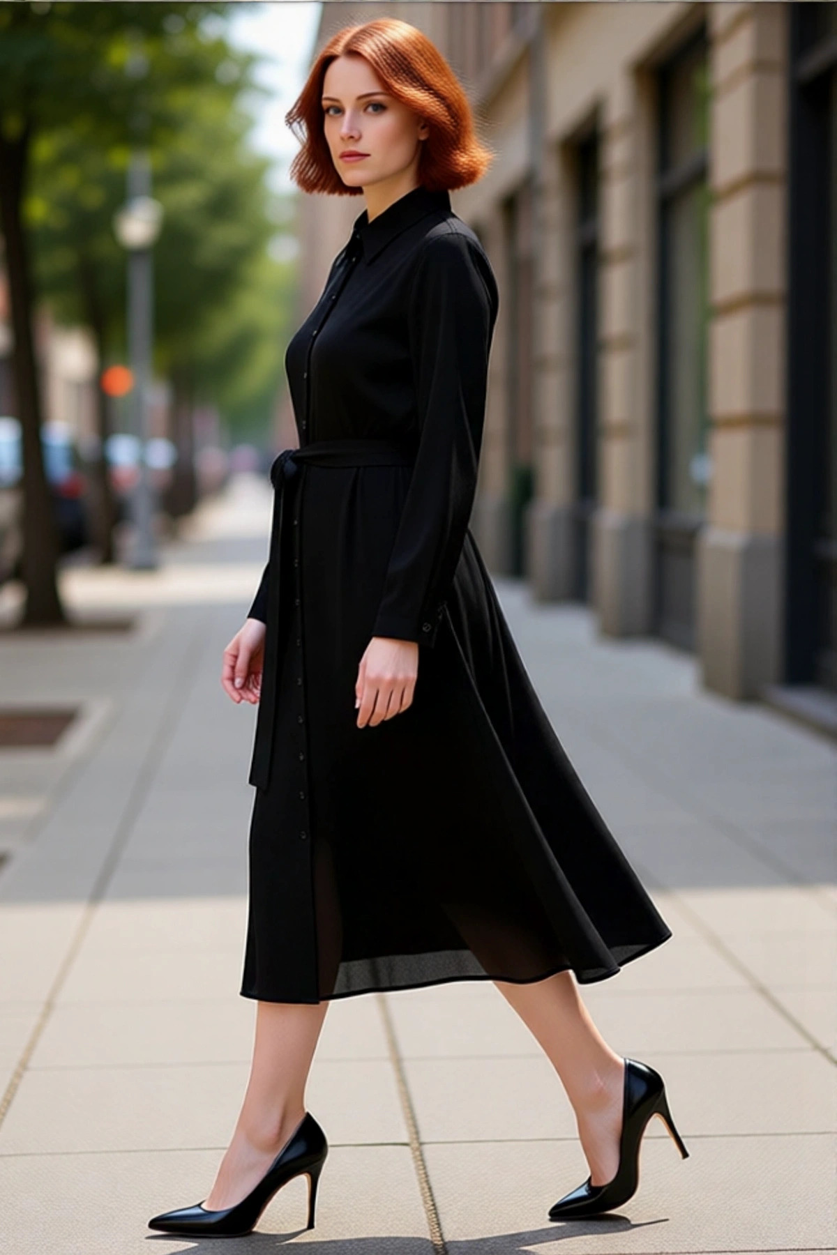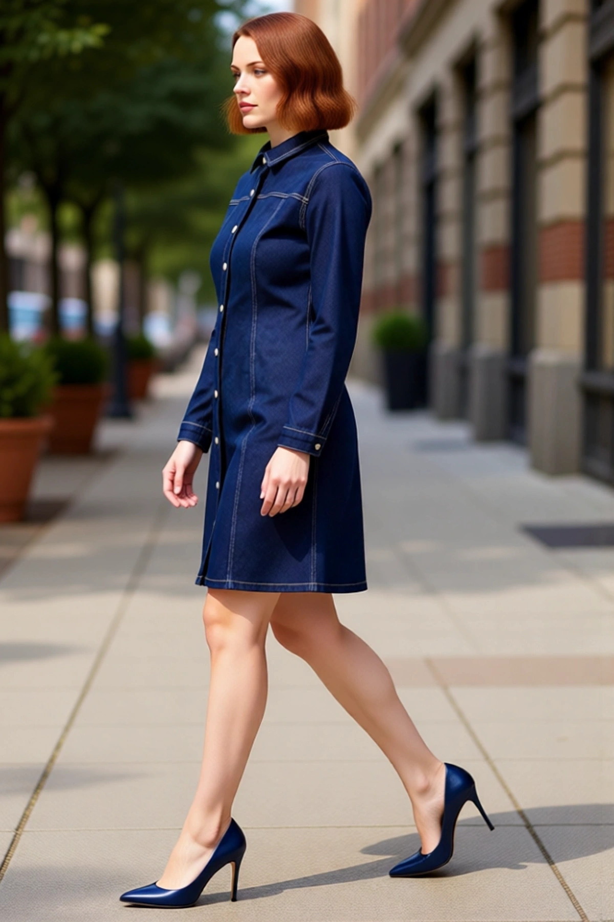 Kadın A Line Kesim Denim Gömlek Yaka Uzun Kollu Elbise Modern Şık Büyük Beden Günlük Kombinler İçin