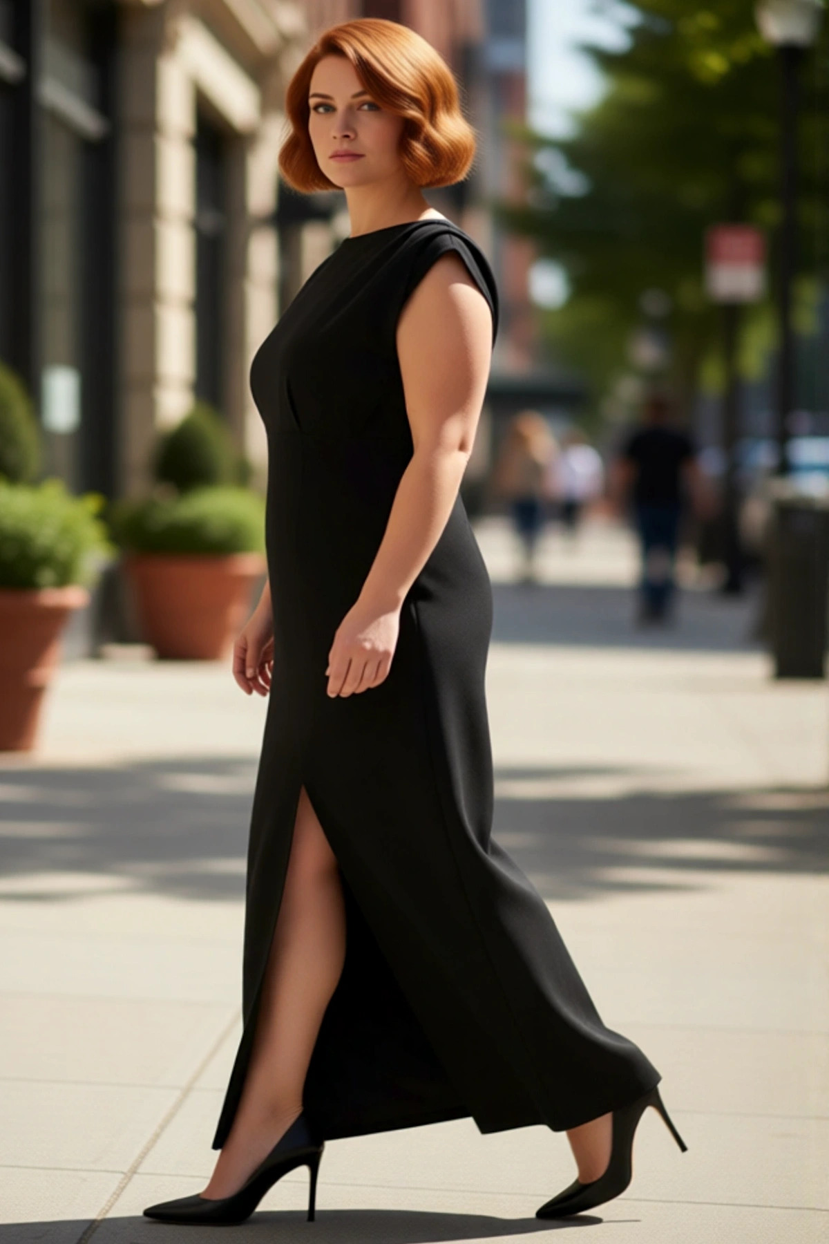 Kadın Büyük Beden Kayık Yaka Kolsuz Maxi Abiye Dokuma Elbise Şık Akşam Davetlerine Uygun Kaliteli