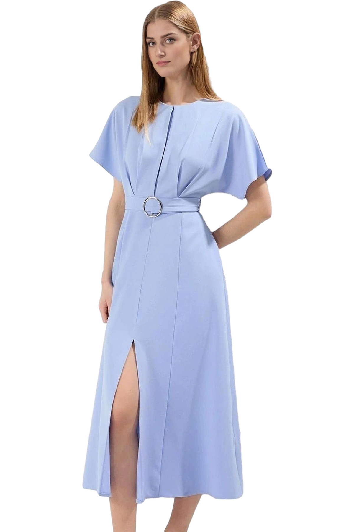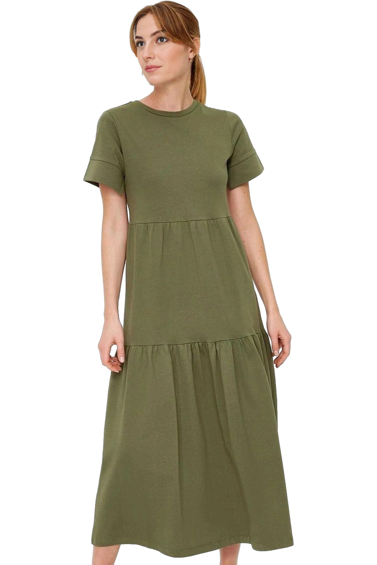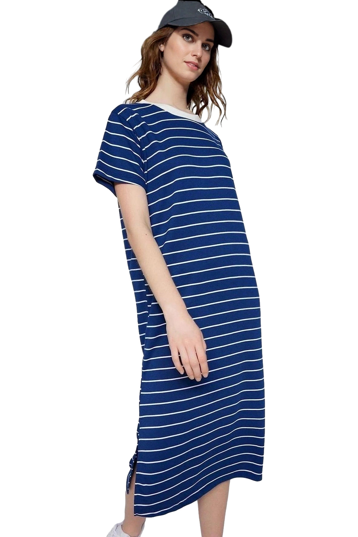 Rahat Pamuklu Maxi Elbise Yazlık A line Bisiklet Yaka Kısa Kollu Tasarım Modern Stil Uzun Ömürlü