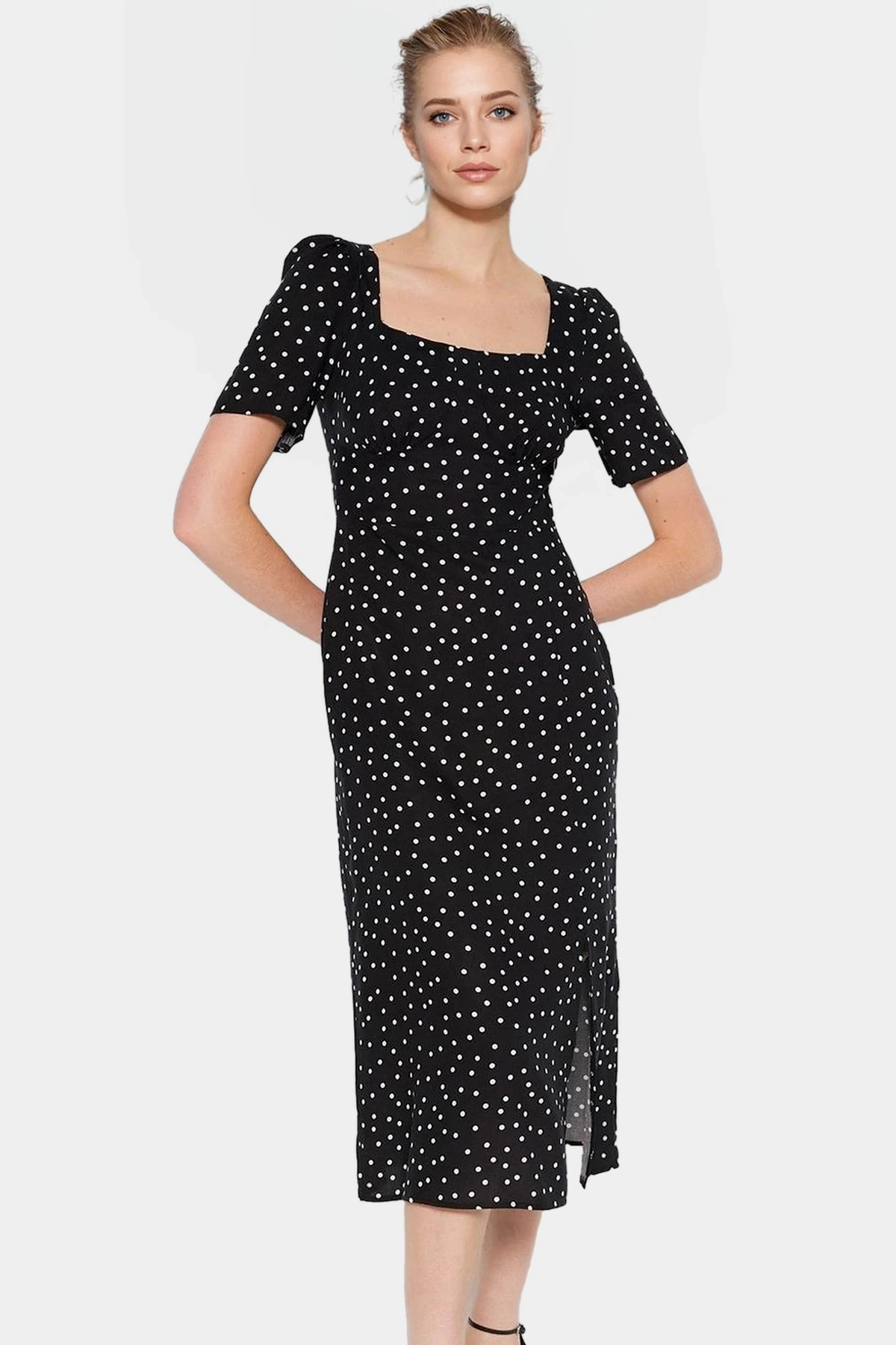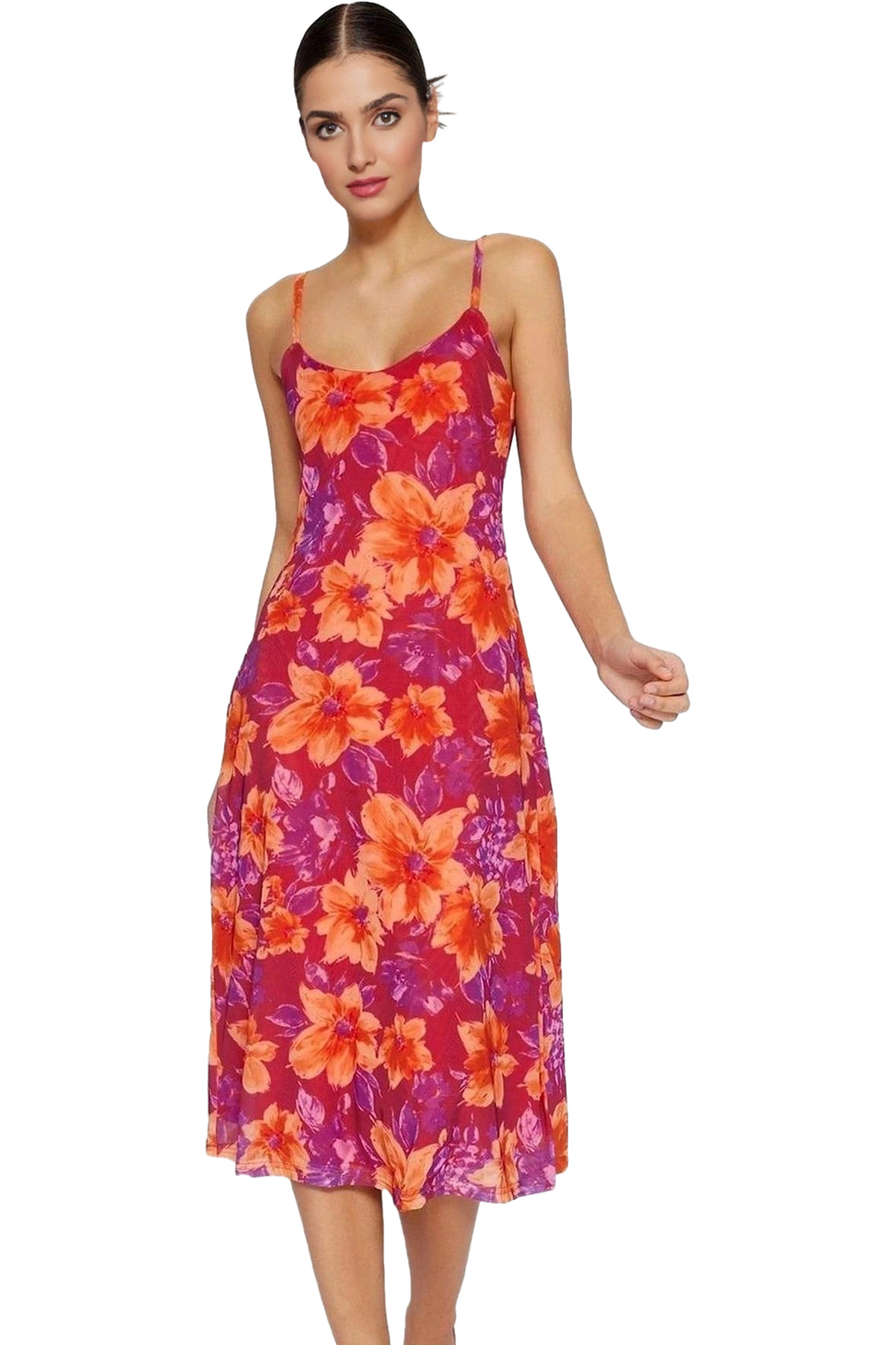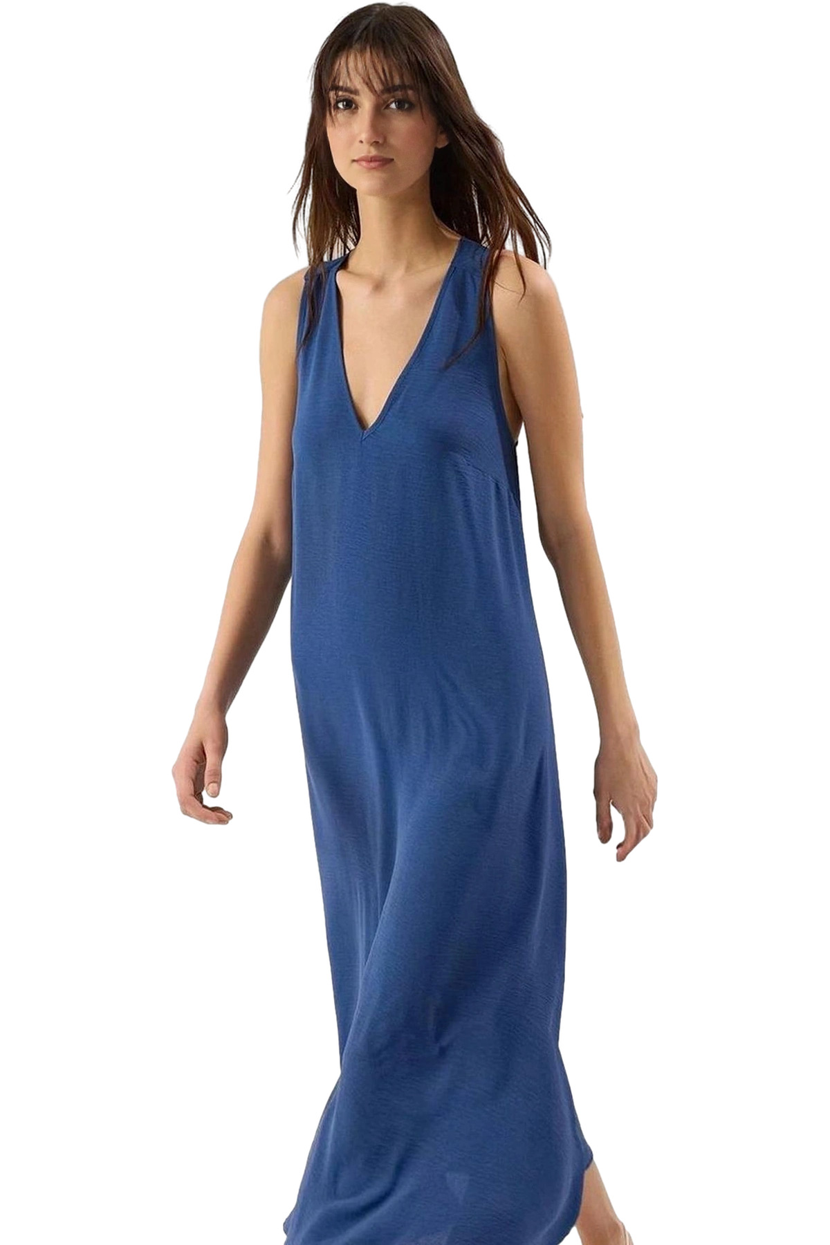 Rahat Pamuklu Maxi Elbise Yazlık A line Bisiklet Yaka Kısa Kollu Tasarım Modern Stil Uzun Ömürlü