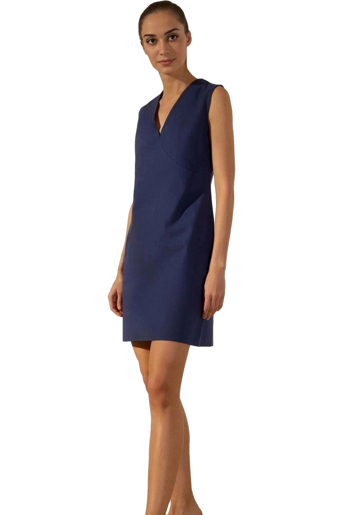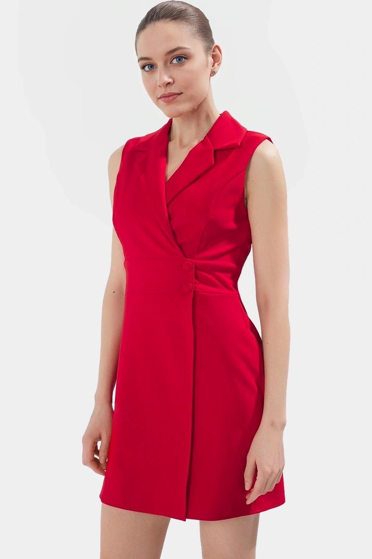 İş İçin Uygun Mini Elbise Polyester Dokuma Ceket Yaka Kolsuz Profesyonel Görünüm