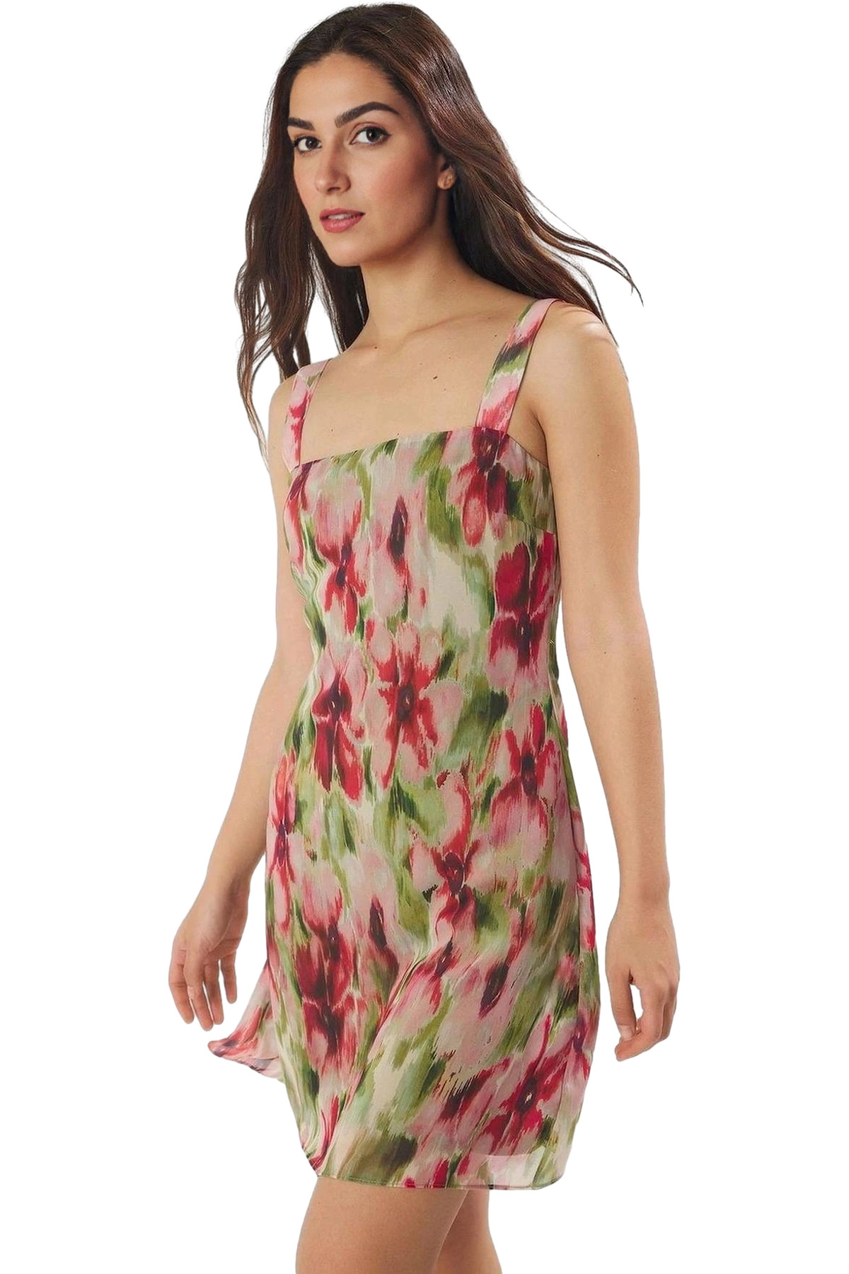 Çok Soyut Desenli Şifon Mini Elbise A Kesim Kolsuz Rahat Mükemmel Uyum Konforlu