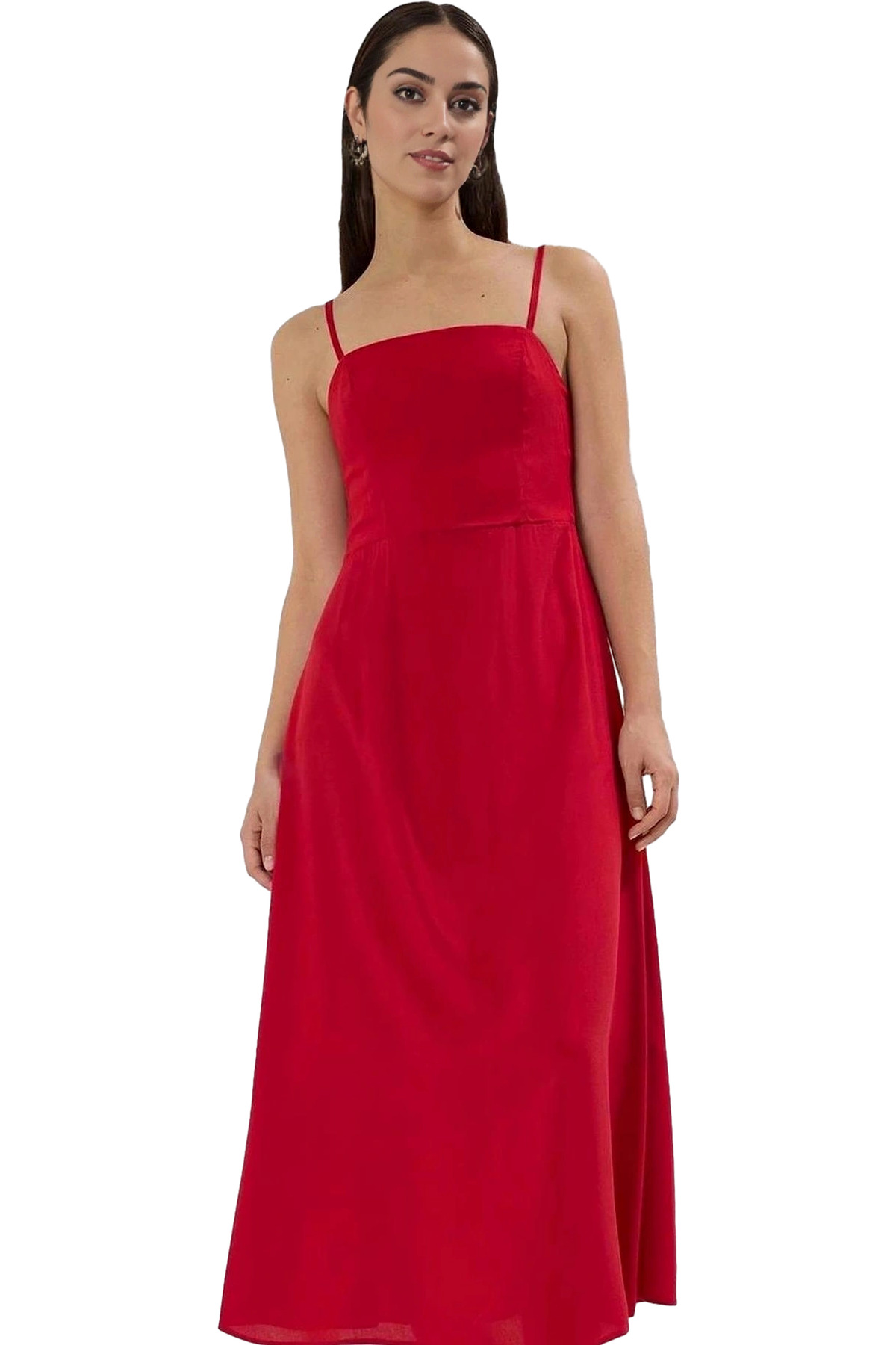 Şık ve Rahat Viskoz Maxi Elbise Kare Yaka A line Yazlık Günlük Kullanım İçin