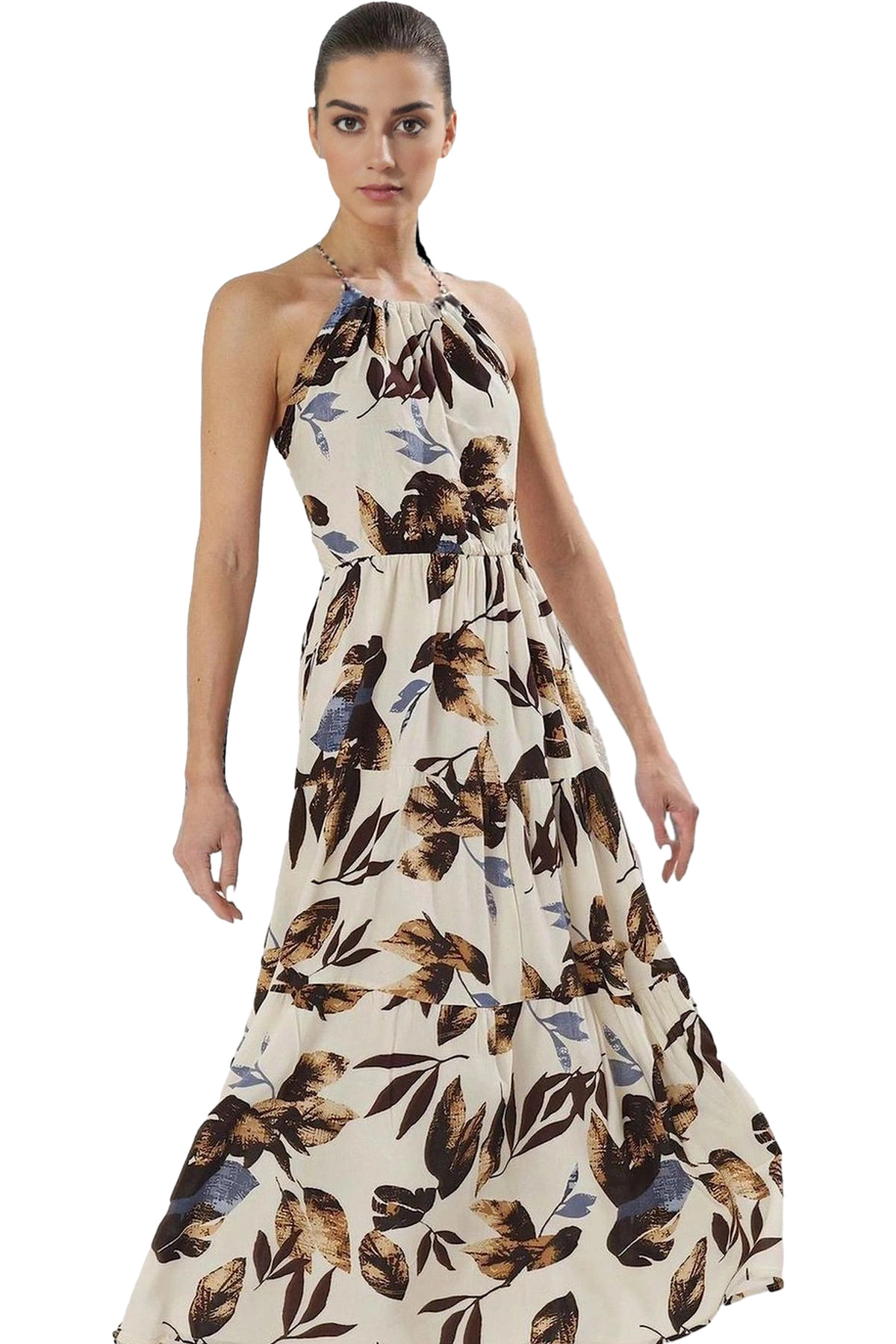 A Line Şifon Maxi Elbise Halter Yaka Çiçek Desen Viskoz Kumaş Yazlık Günlük Kullanım İçin