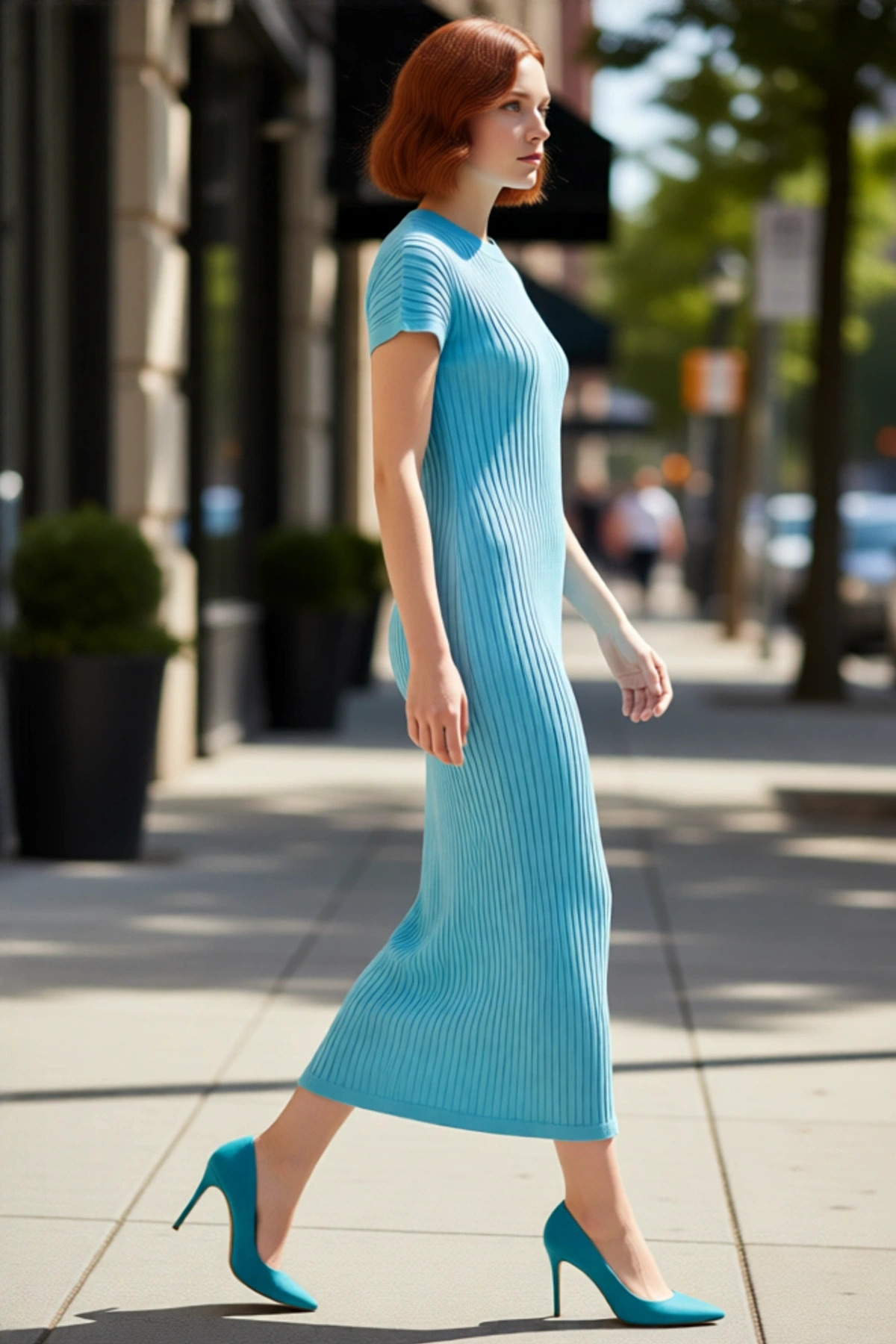 Kolsuz Midi Elbise Vücudu Saran Dokuma Kumaş Finike Seçkin Malzeme Premium Kalite