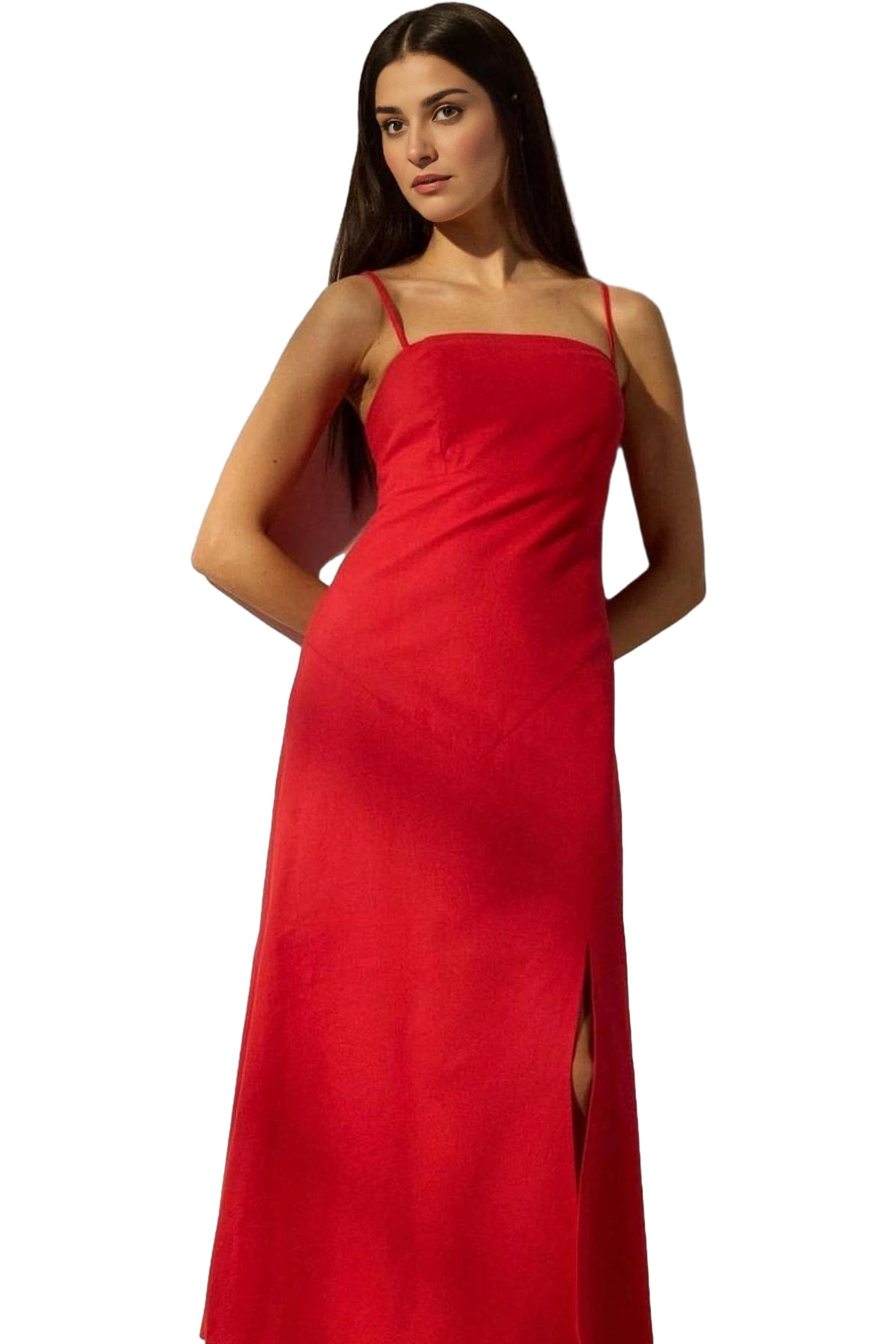 A line Maxi Elbise Pamuk Keten Dokuma Nefes Alabilir Mükemmel Uyum Özel Tasarım Modern Stil
