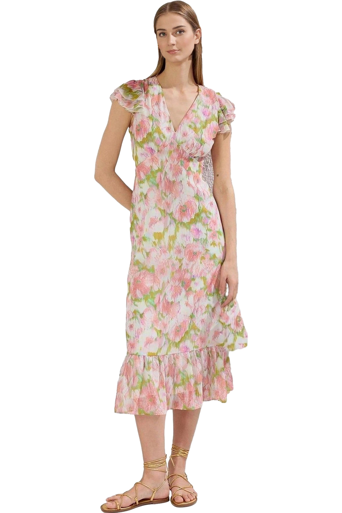 Çiçek Desenli Polyester Şifon Elbise A Kesim Midi Boy Rahat Ve Şık Uzun Ömürlü Özenle Seçilmiş