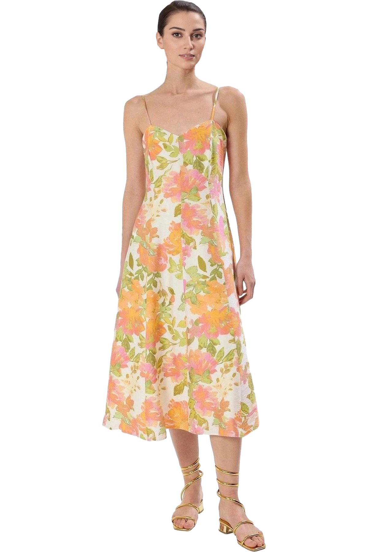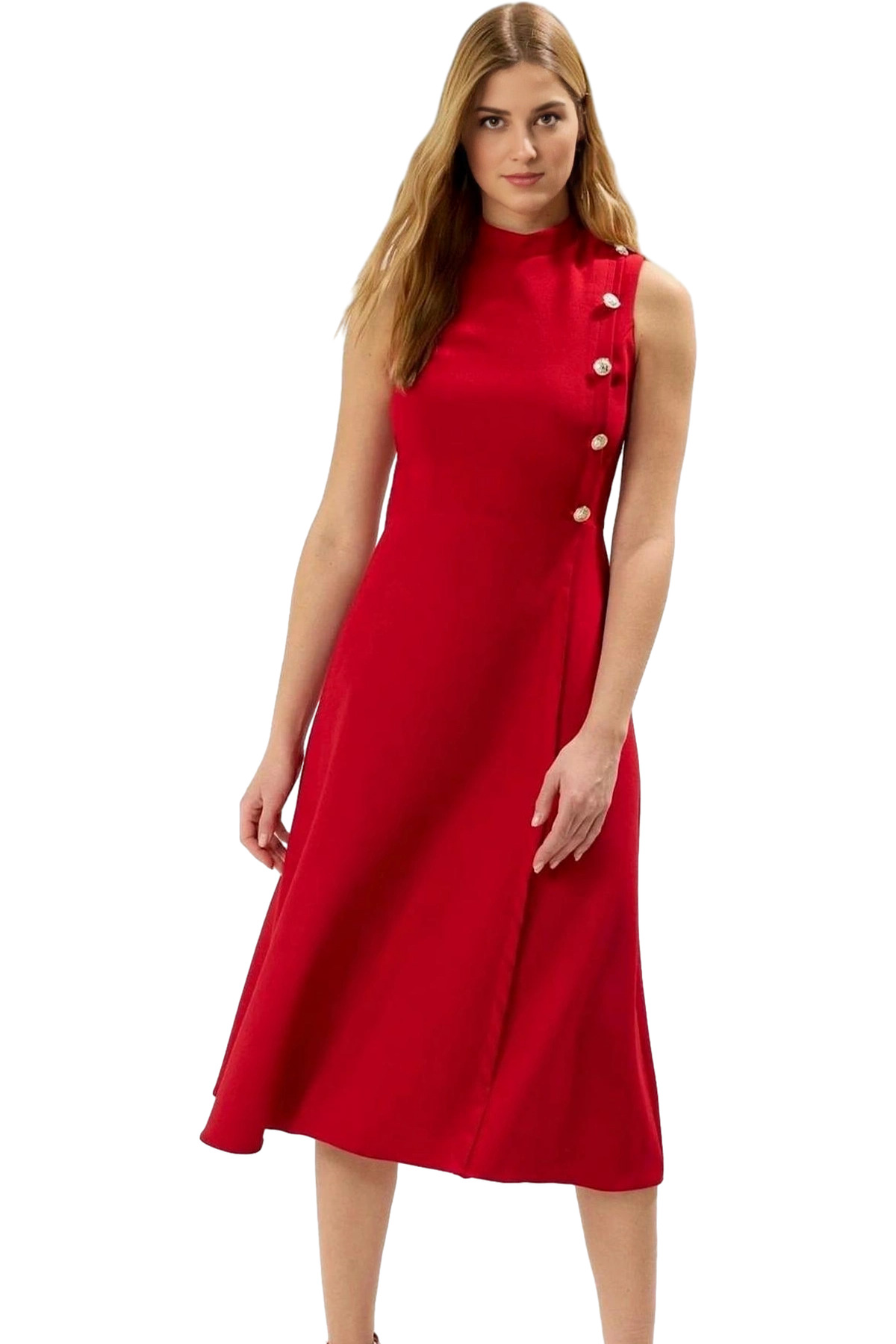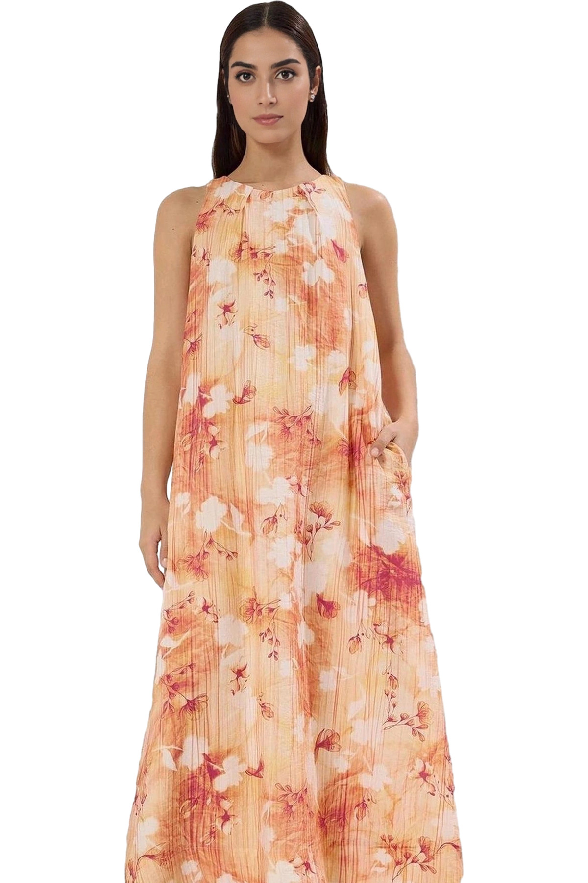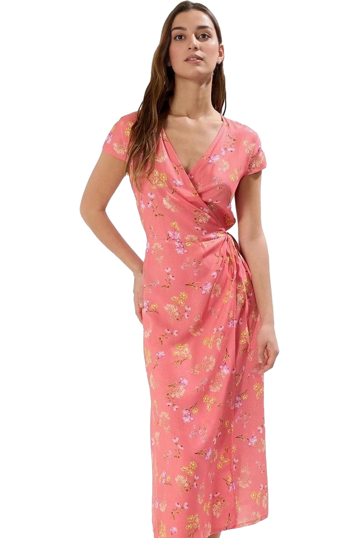 Rahat Yazlık Crinkle Dokuma Midi Elbise Belden Açılan Etek Gipeli V Yaka Tasarım Dayanıklı Malzeme