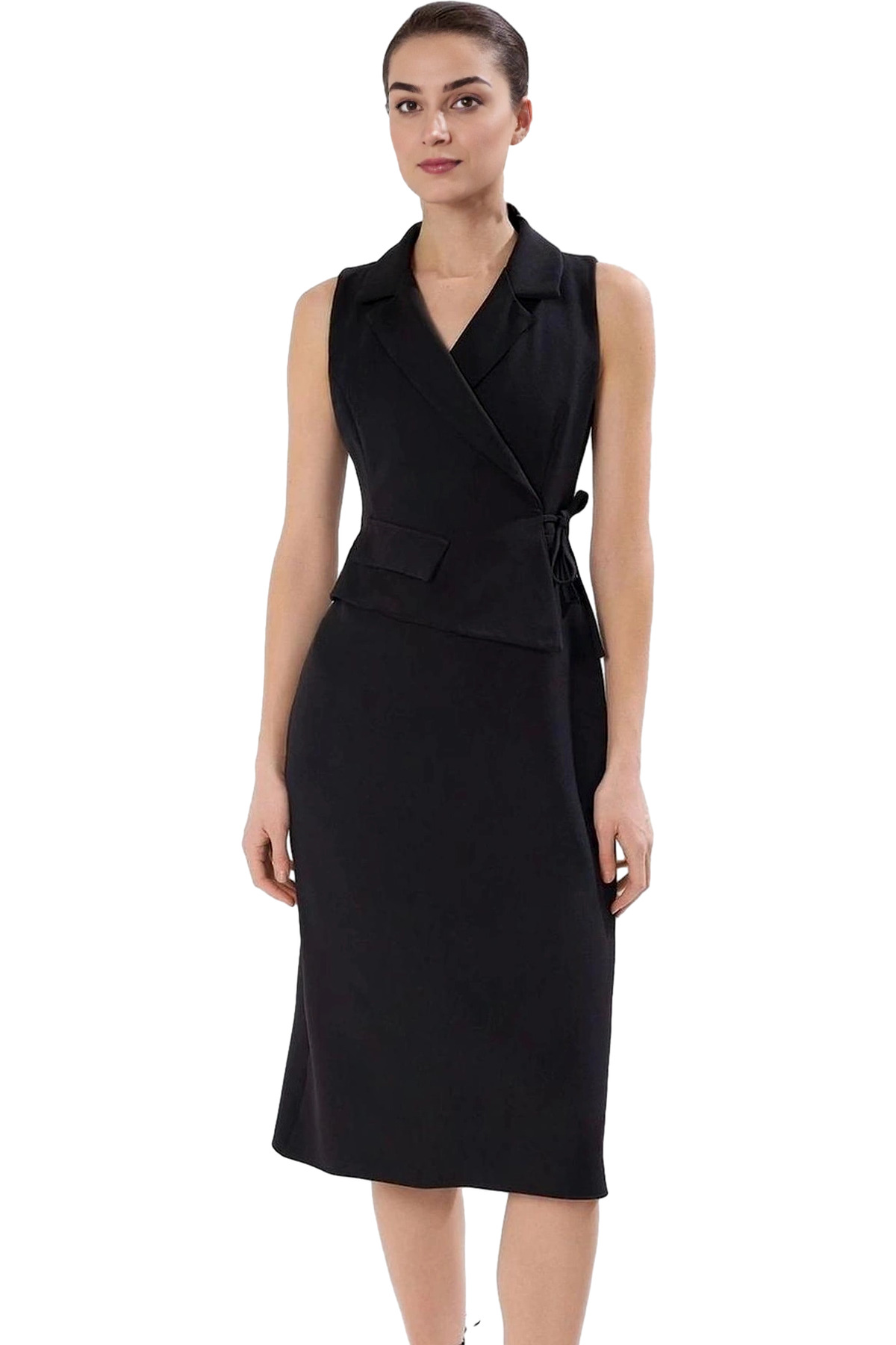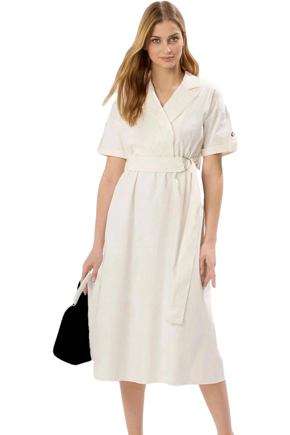 Bodycon Kesim Kısa Kollu Midi Elbise Dokuma Kemer Detaylı İş Elbisesi Rahat Kullanım Uzun Ömürlü