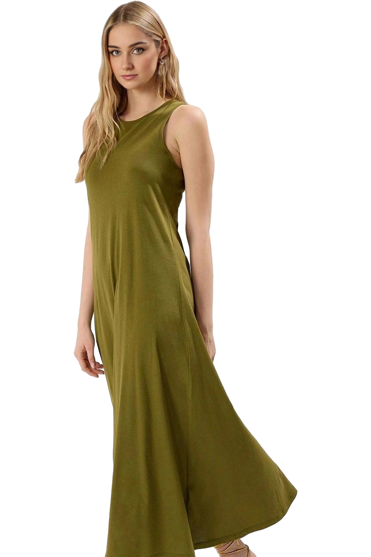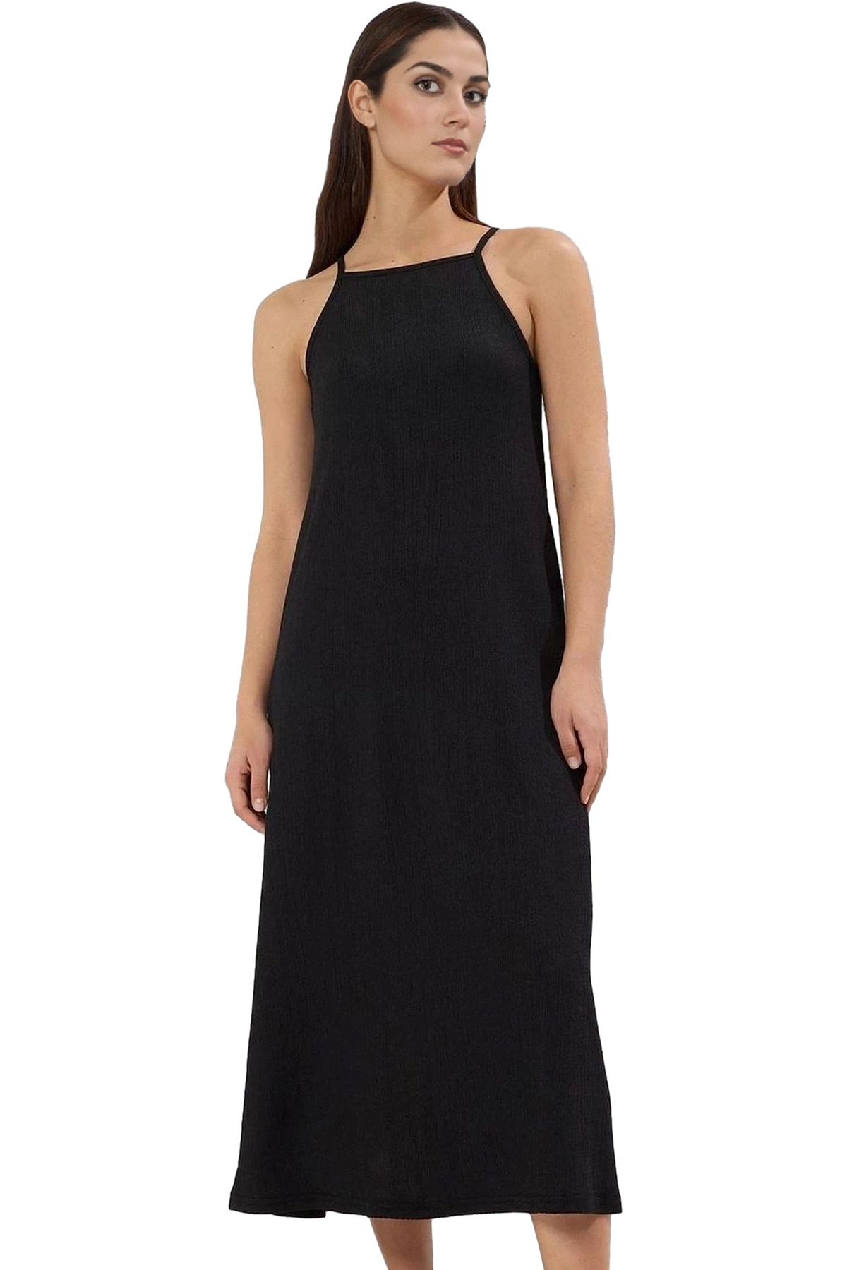 A line Tül Maxi Elbise Örme Kumaş Halter Yaka Yırtmaçlı Rahat Kesim Mükemmel Uyum Trend Tasarım