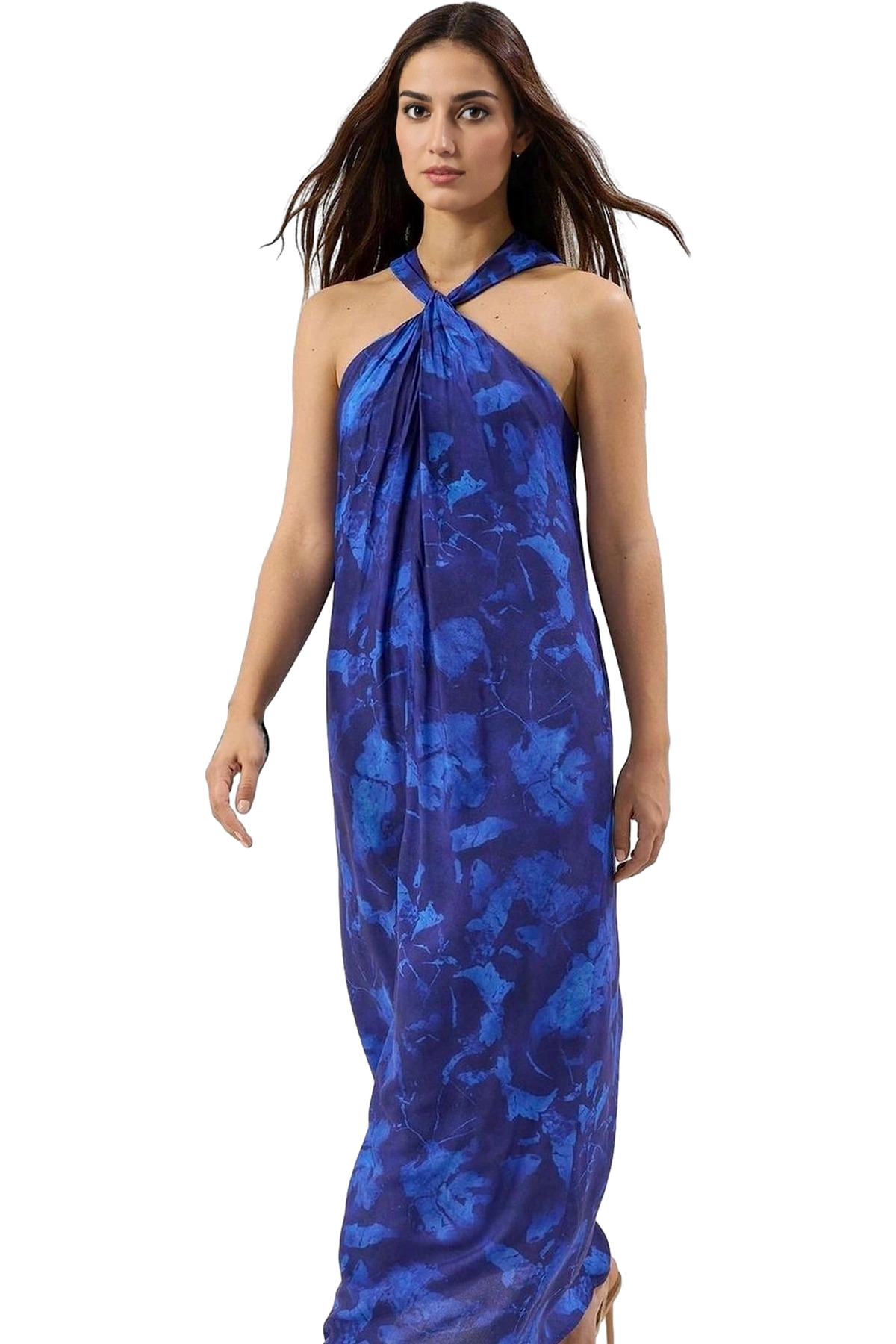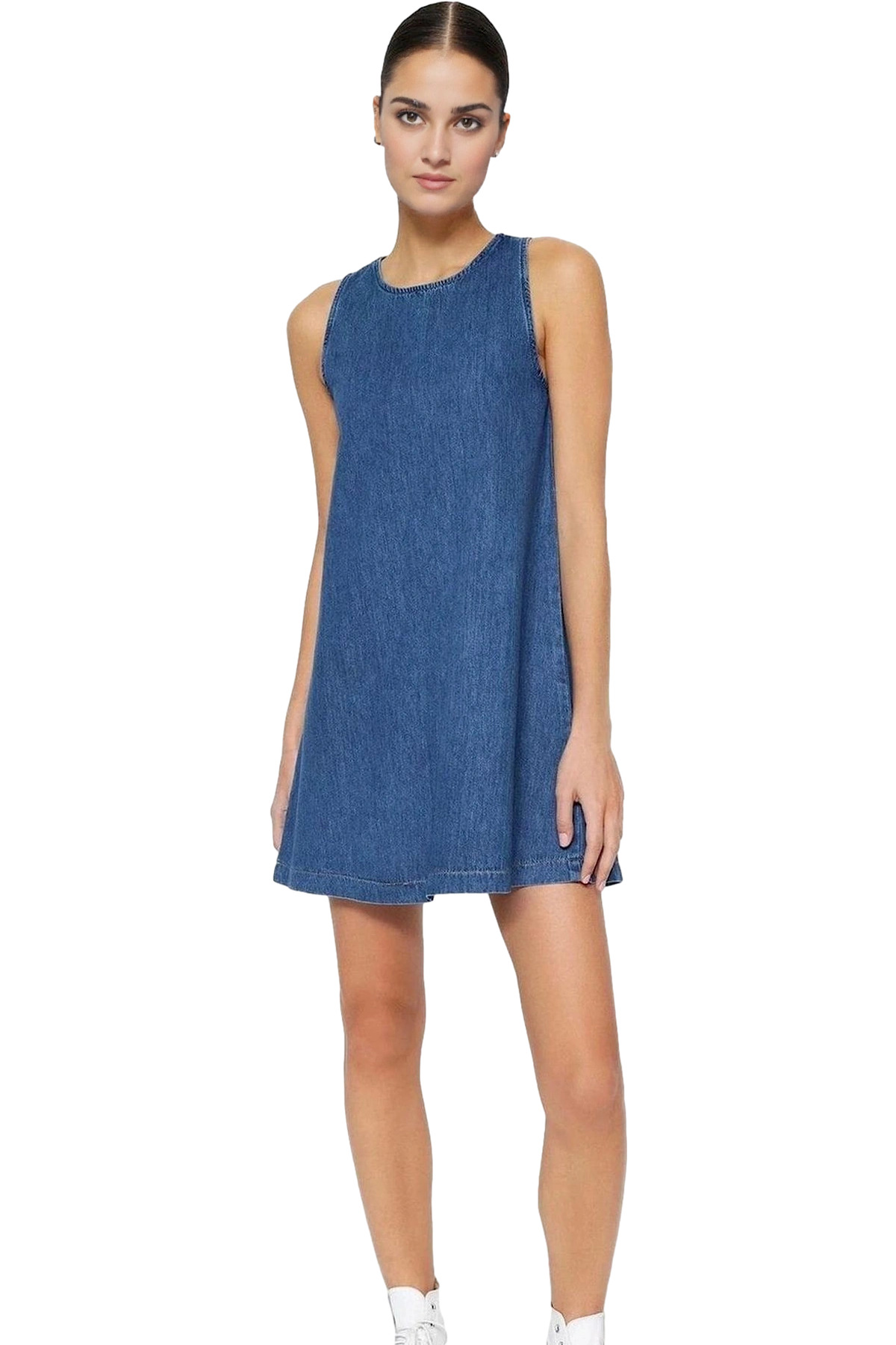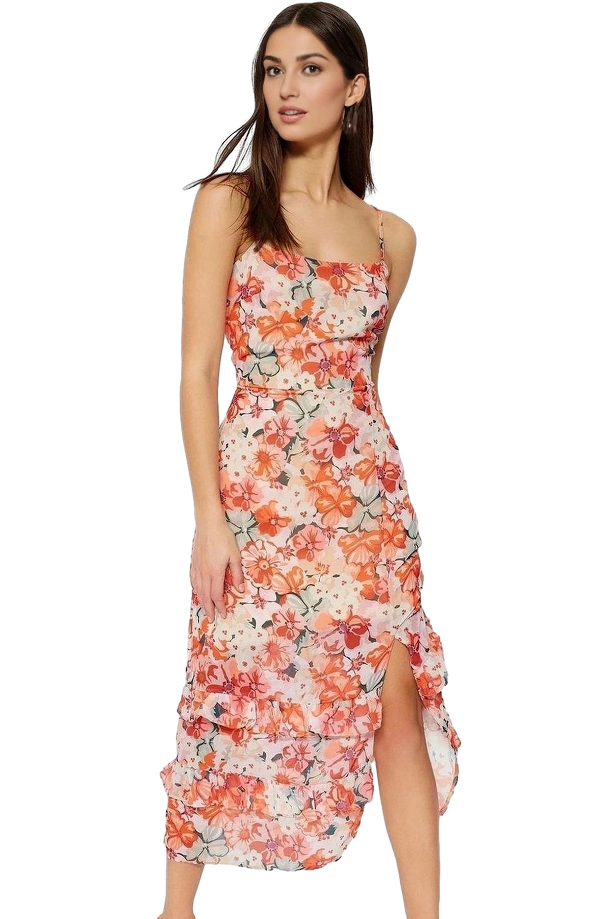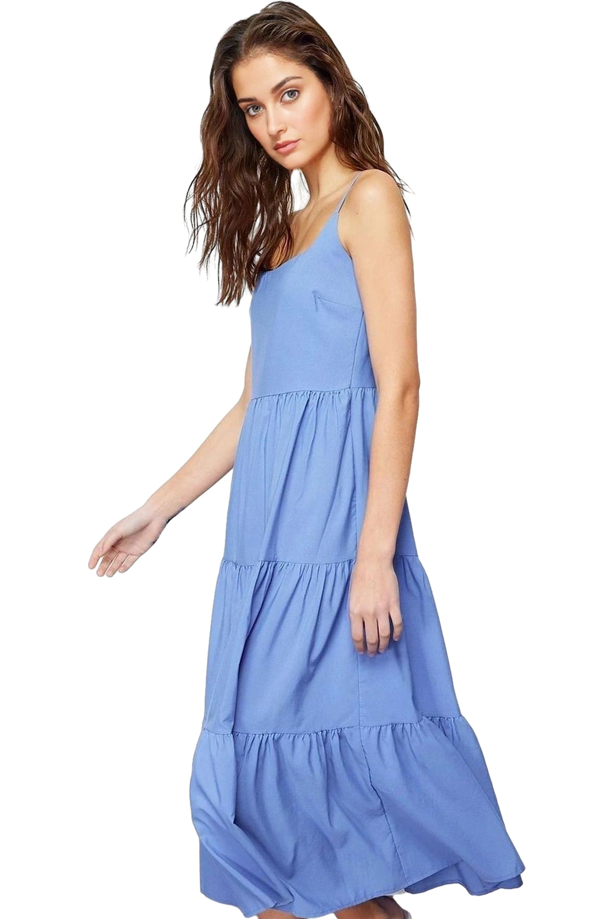 Yazlık Kadın Midi Elbise A line Kalın Askılı Kalp Yaka Örme Kumaş Seçkin Malzeme Mükemmel Uyum