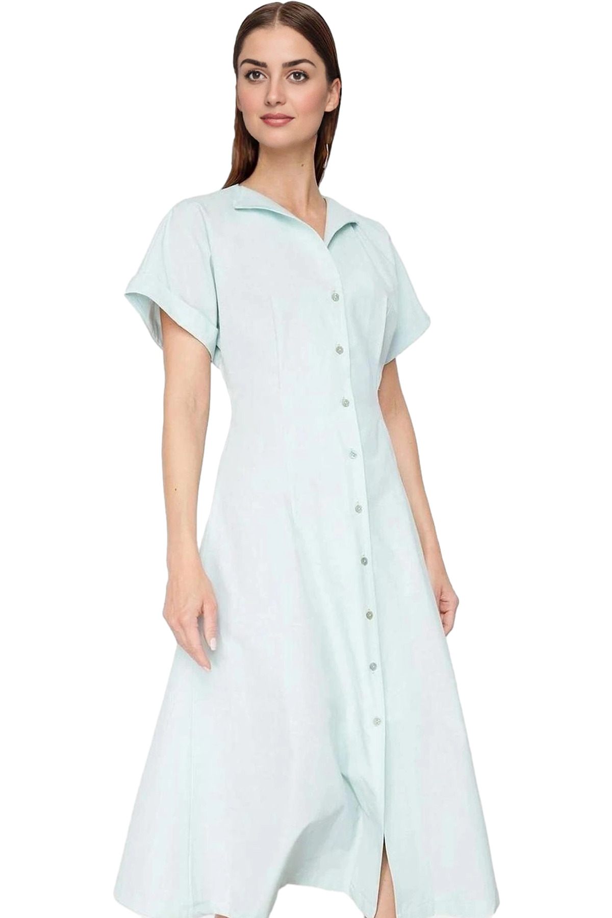 A Kesim Örme Elbise Viskoz Polo Yaka Çizgili Desen Modern Stil Kaliteli İşçilik Zarifane Tasarım