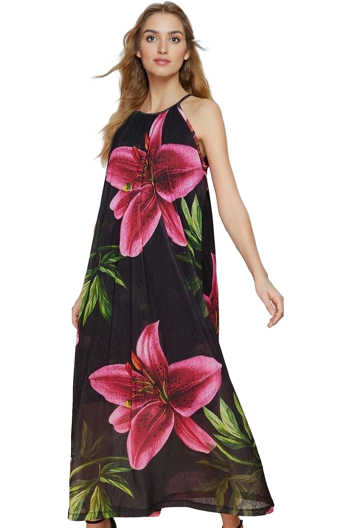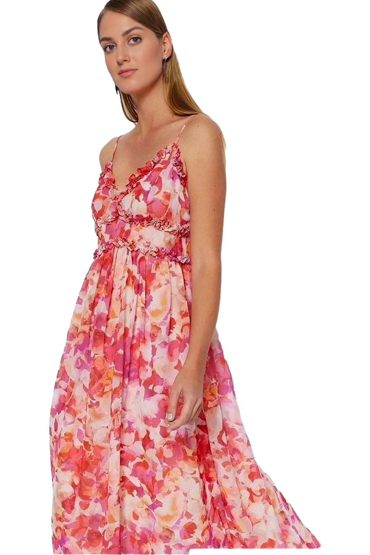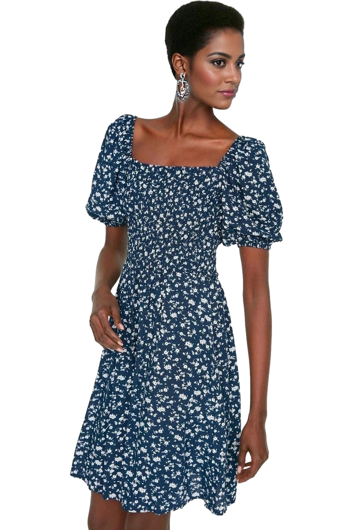 Şifon Kumaş Mini Elbise V Yaka Çiçek Desenli Skater Kalıp Rahat Seçkin Malzeme Konforlu Kesim