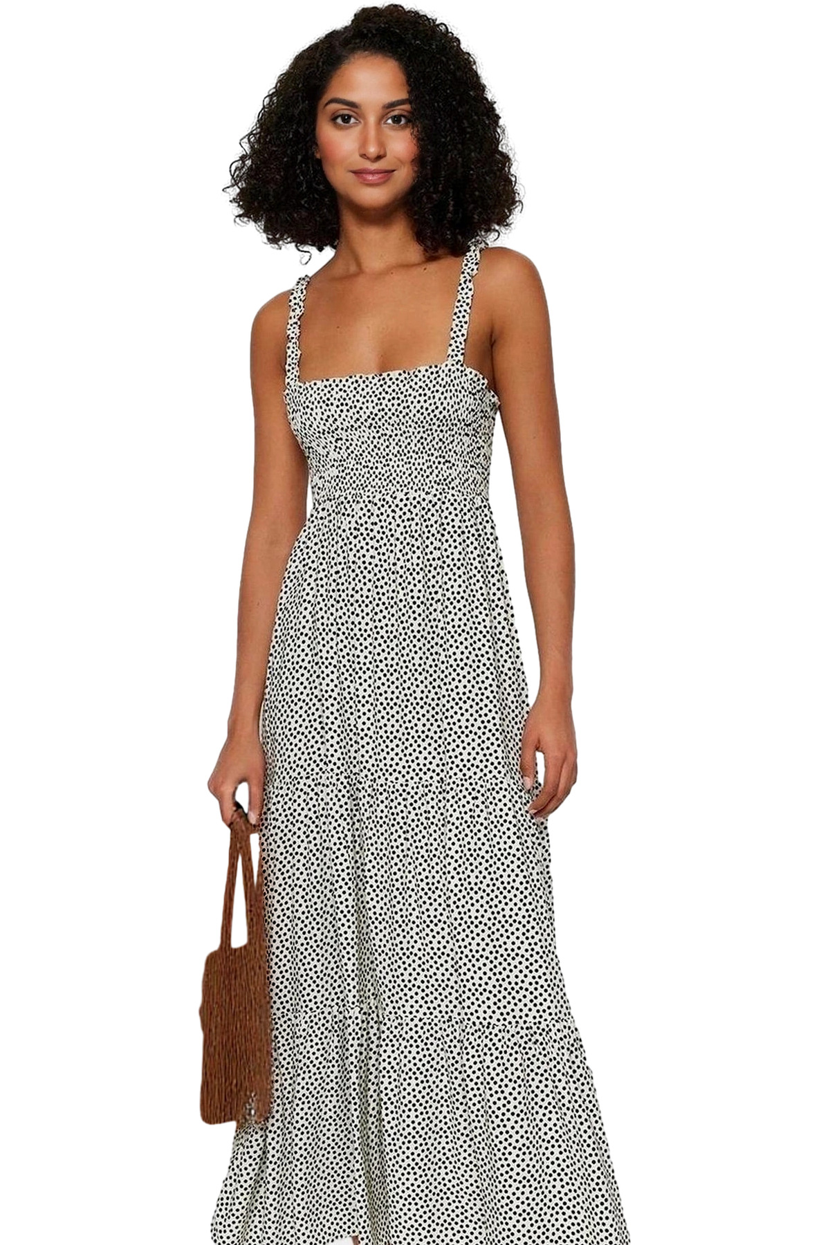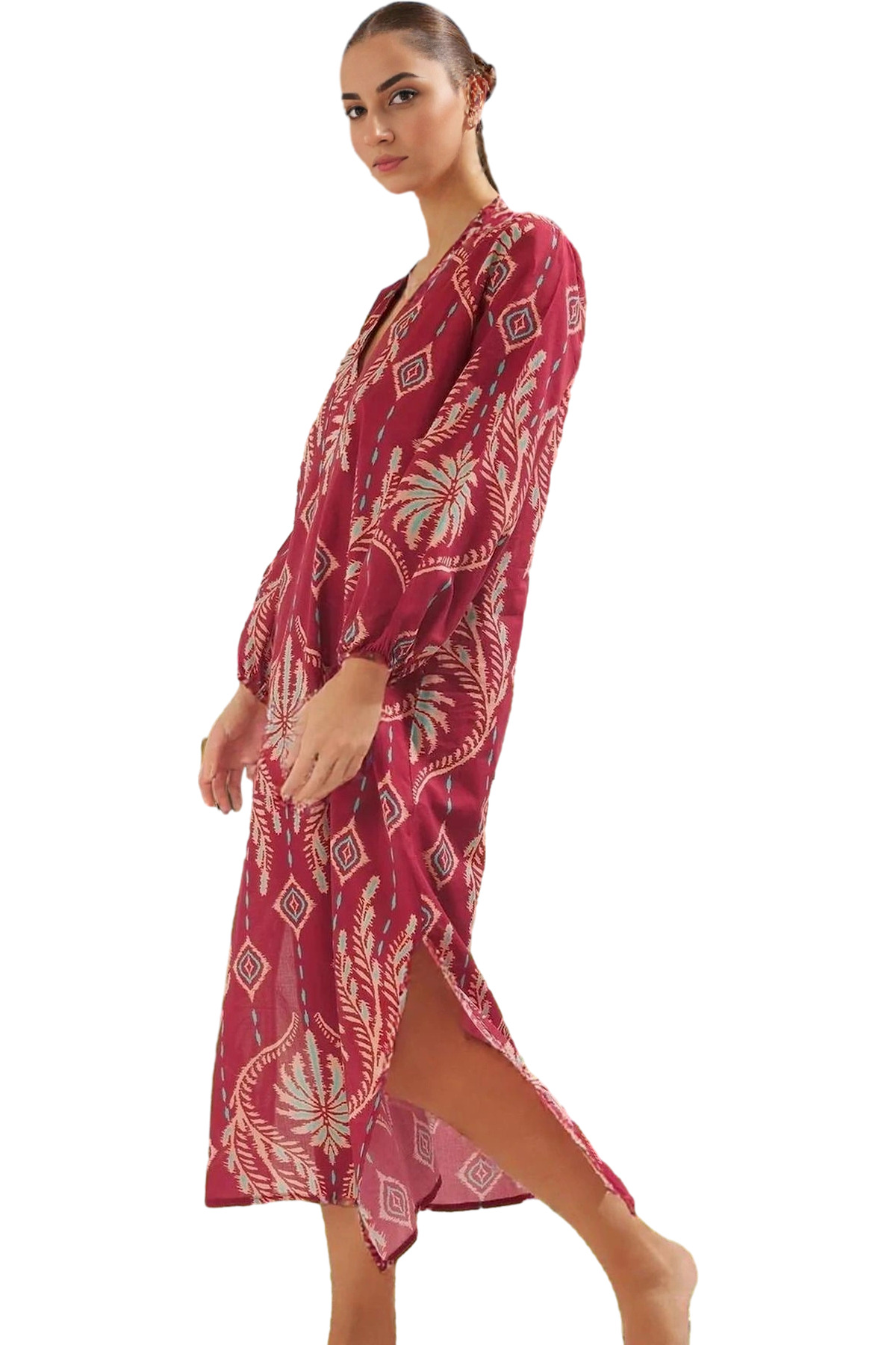 Rahat Pamuklu Maxi Elbise Etnik Desenli Balon Kol Günlük Şık Şık Görünüm Seçkin Malzeme Modern Stil