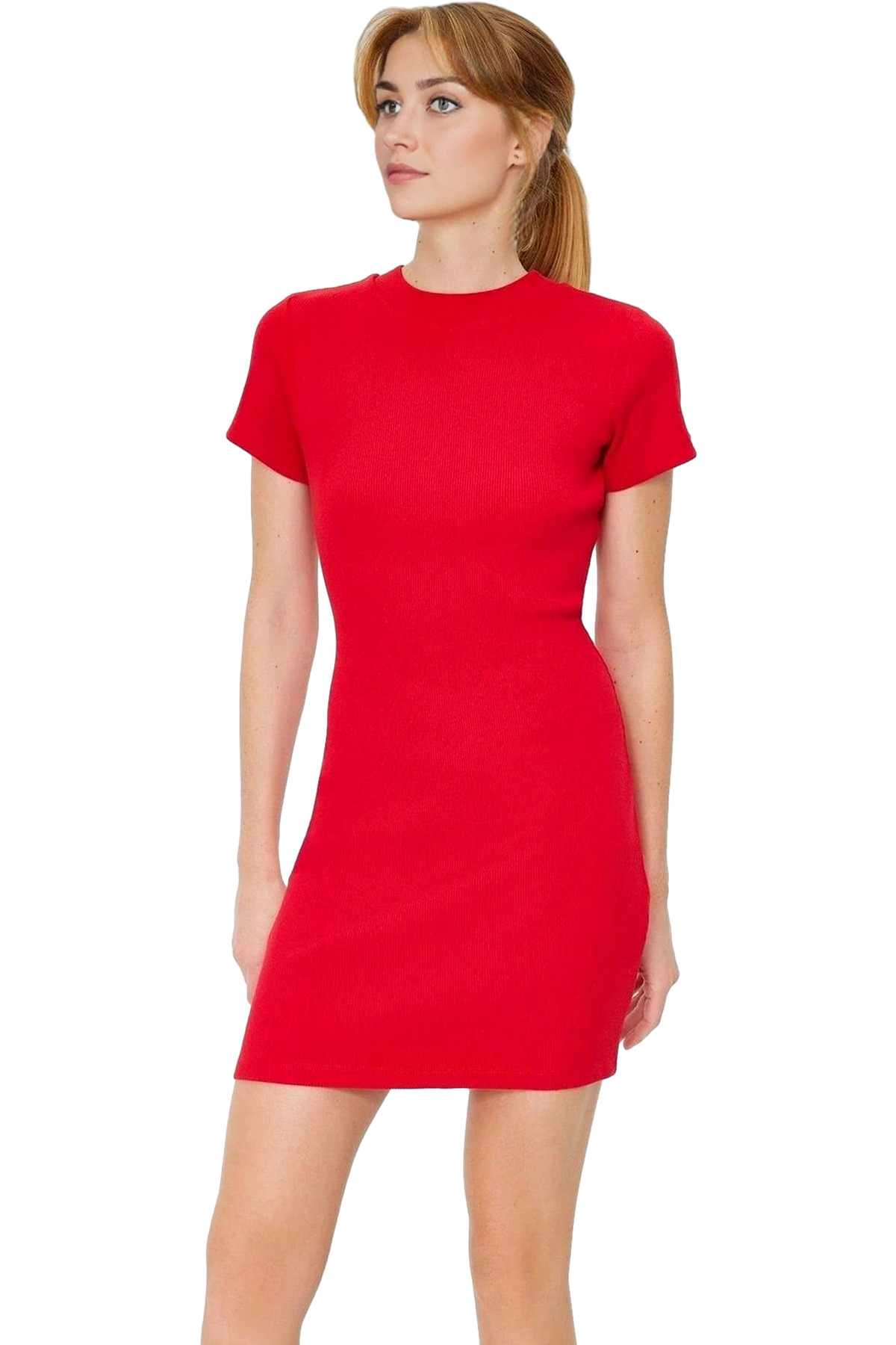 Pamuklu Bodycon Mini Elbise Halter Yaka Örme Kumaş Yazlık Rahat Özel Tasarım Profesyonel Görünüm
